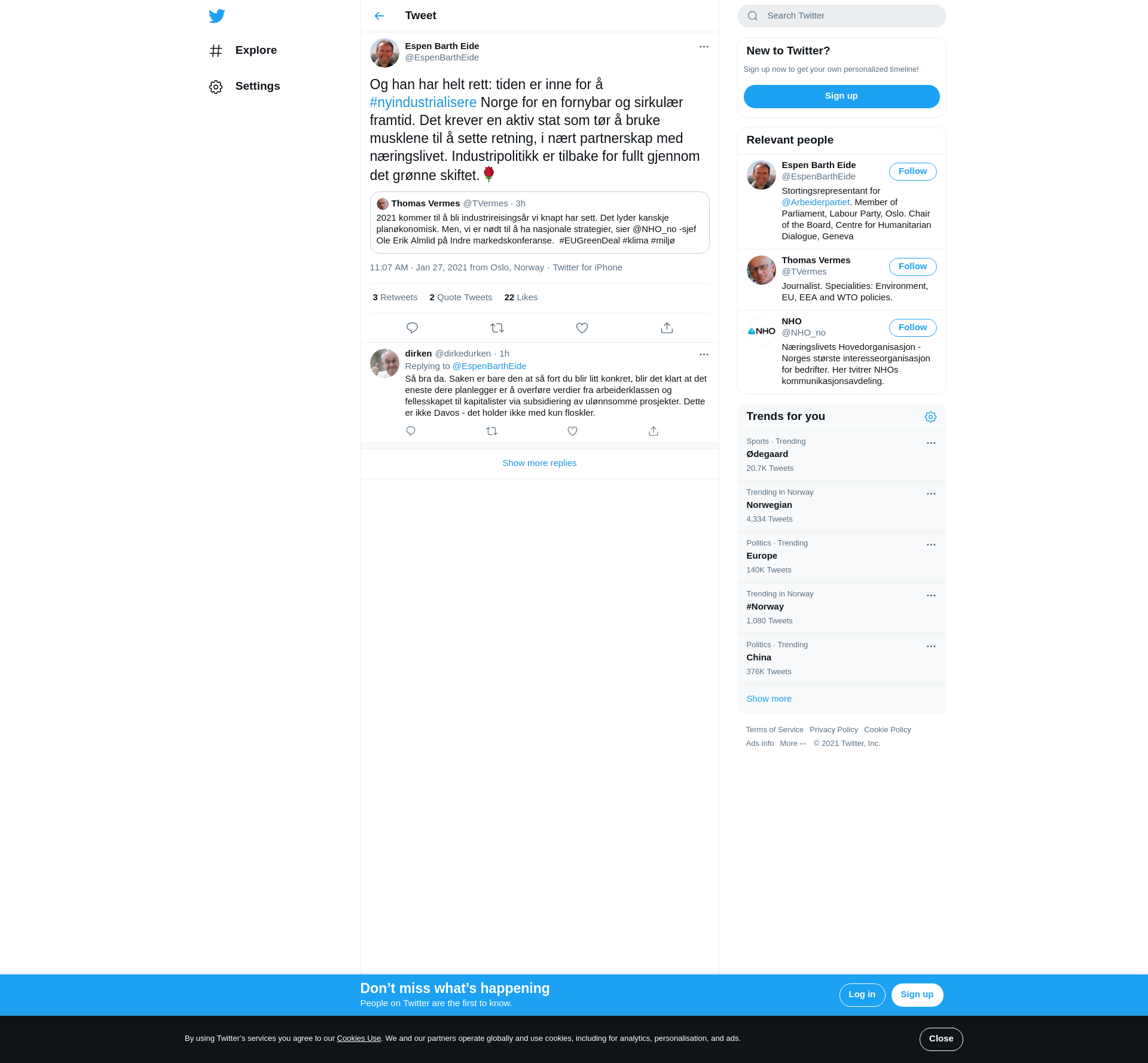Og han har helt rett: tiden er inne for å #nyindustrialisere Norge for en fornybar og sirkulær framtid. Det krever en aktiv stat som tør å bruke musklene til å sette retning, i nært partnerskap med næringslivet. Industripolitikk er tilbake for fullt gjennom det grønne skiftet.🌹