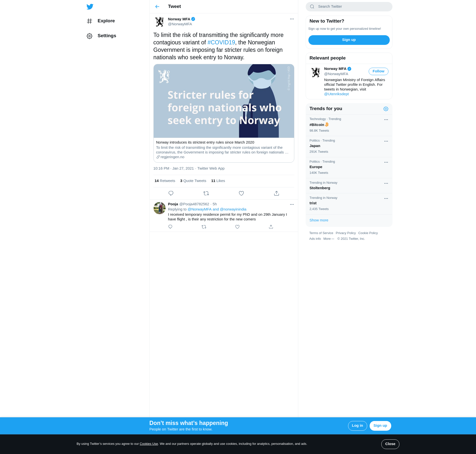 To limit the risk of transmitting the significantly more contagious variant of the coronavirus, the Government is imposing far stricter rules on foreign nationals who seek entry to Norway. In general, only foreign nationals who reside in Norway will be...