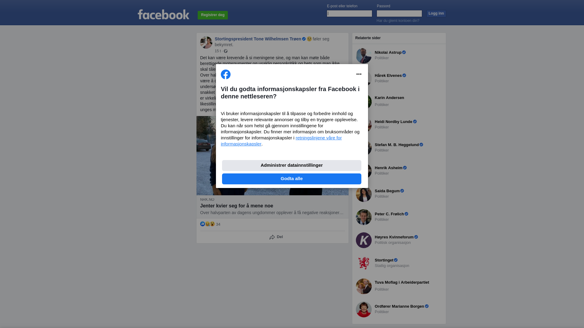 Over halvparten av de unge sier noe annet enn det de mener, og mange lar være å dele meningene sine i frykt for negative kommentarer. Det viser en undersøkelse Opinion har gjort for Stortinget. Vi ser at særlig jenter blir snakket ned på grunn av alder, og mange jenter sier de blir latterliggjort. Jeg er virkelig bekymret for at unge stemmer stilner, og for hvordan arbeidet med likestilling påvirkes, når særlig jenter møter disse utfordringene. Vi trenger de unges meninger, og vi trenger dem nå!