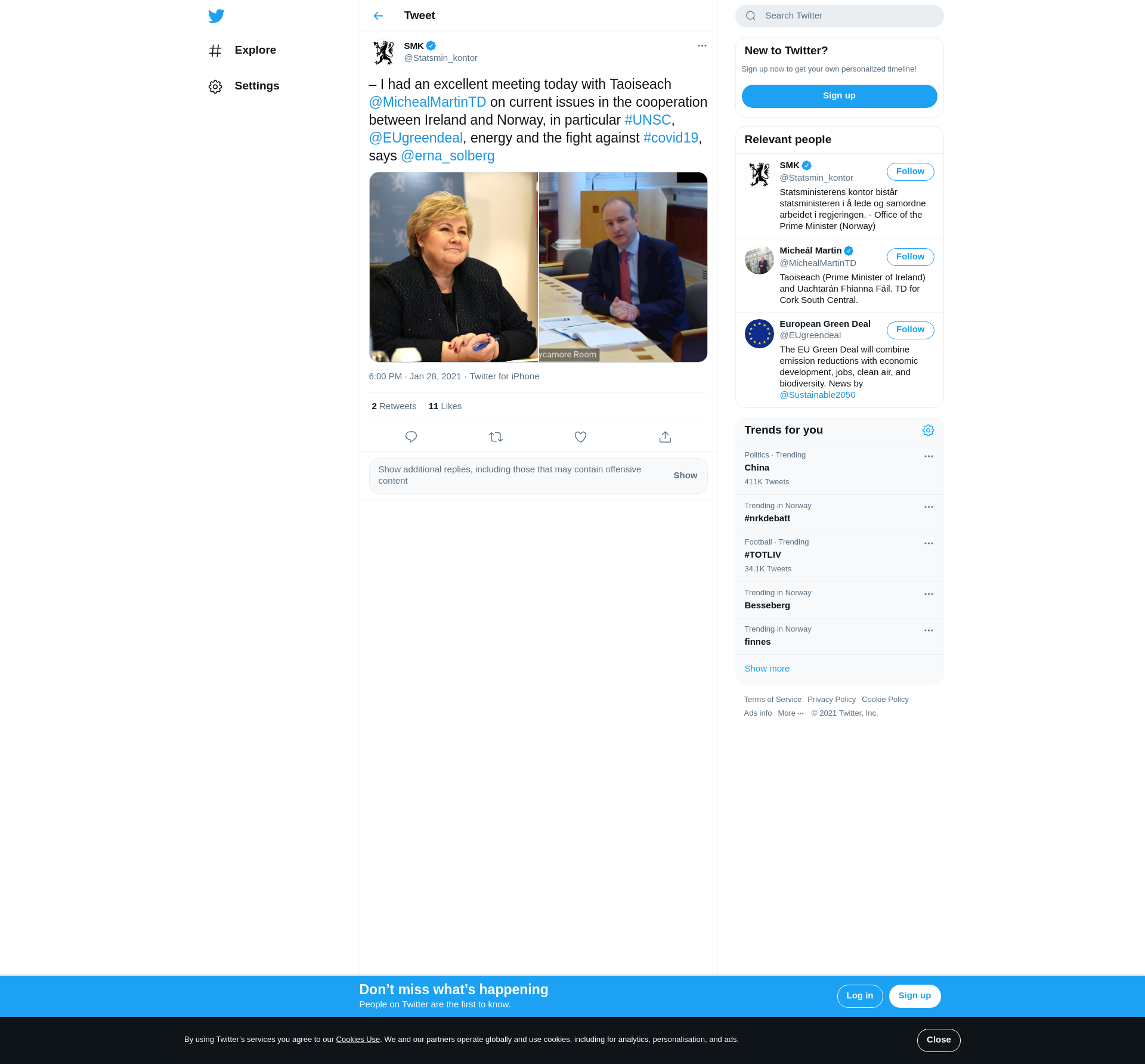 – I had an excellent meeting today with Taoiseach @MichealMartinTD on current issues in the cooperation between Ireland and Norway, in particular #UNSC, @EUgreendeal, energy and the fight against #covid19, says @erna_solberg https://t.co/4LynhiDIX6