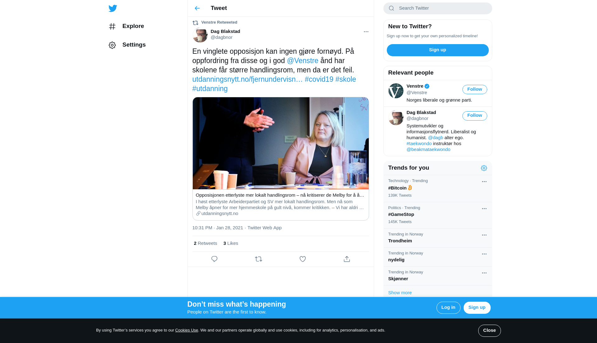 RT @dagbnor: En vinglete opposisjon kan ingen gjøre fornøyd. På oppfordring fra disse og i god @Venstre ånd har skolene får større handlingsrom, men da er det feil. https://t.co/r6WrjbzNeg #covid19 #skole #utdanning