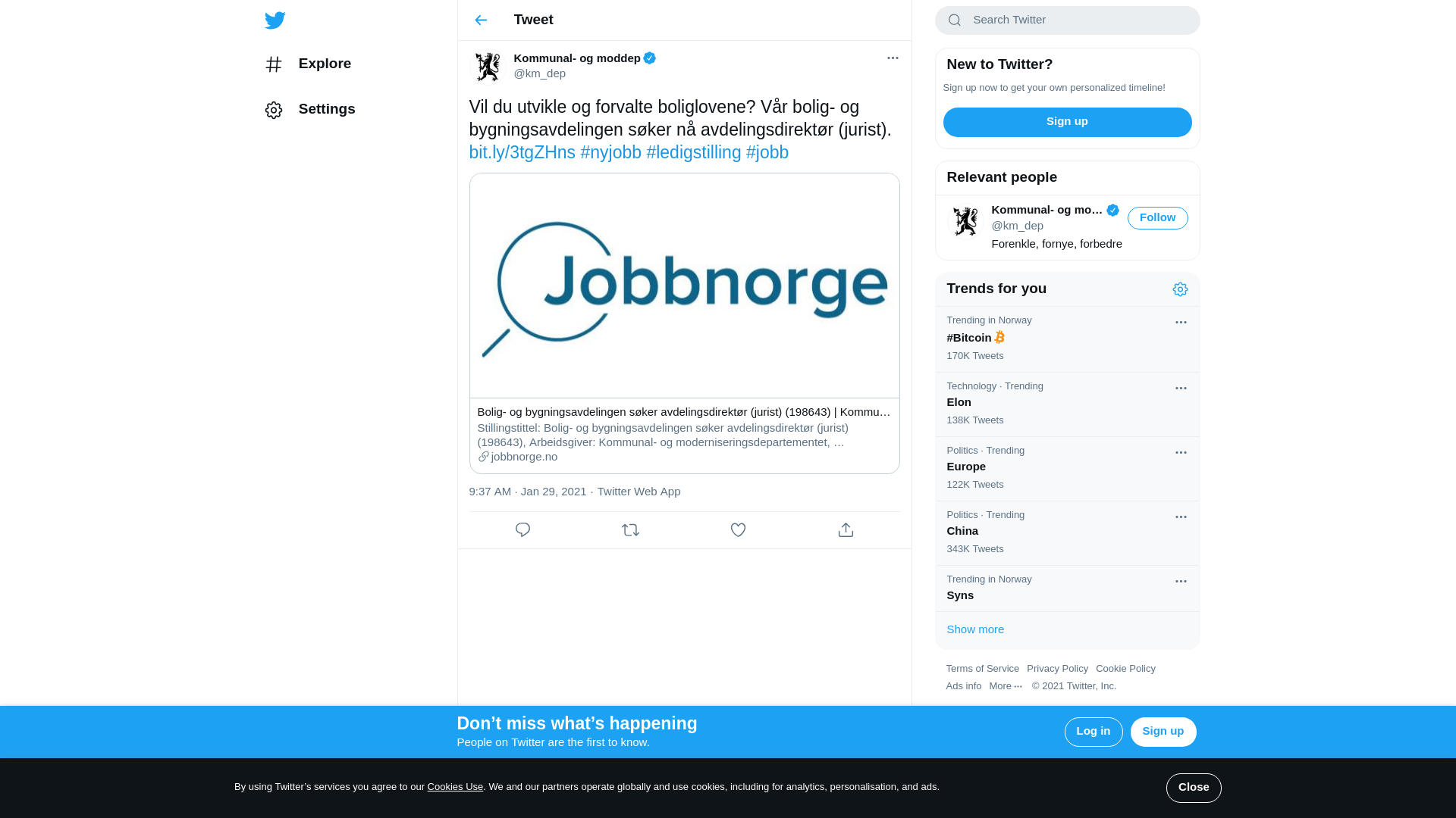 Stillingstittel: Bolig- og bygningsavdelingen søker avdelingsdirektør (jurist) (198643), Arbeidsgiver: Kommunal- og moderniseringsdepartementet, Søknadsfrist: 8. februar 2021
