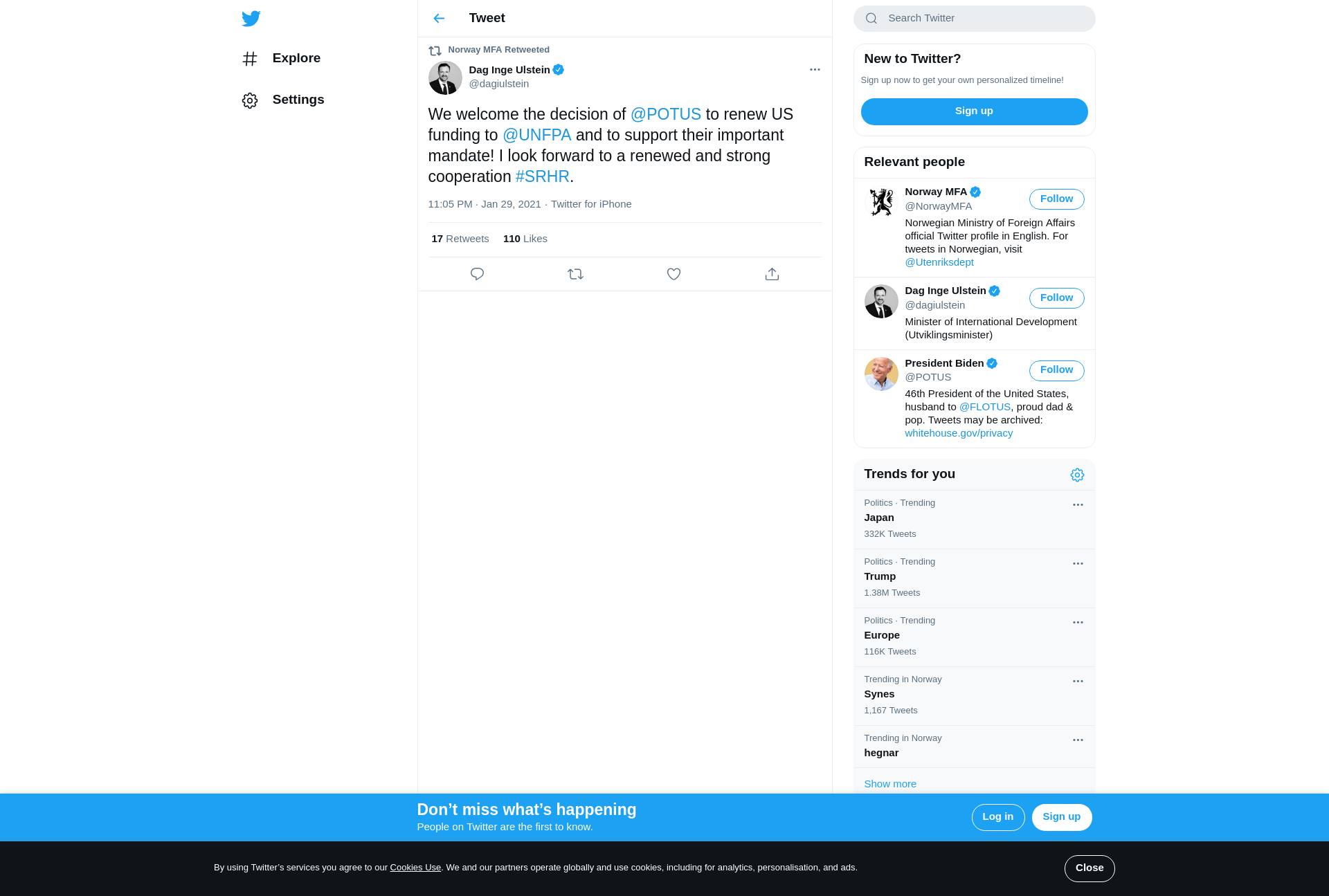 RT @dagiulstein: We welcome the decision of @POTUS to renew US funding to @UNFPA and to support their important mandate! I look forward to a renewed and strong cooperation #SRHR.