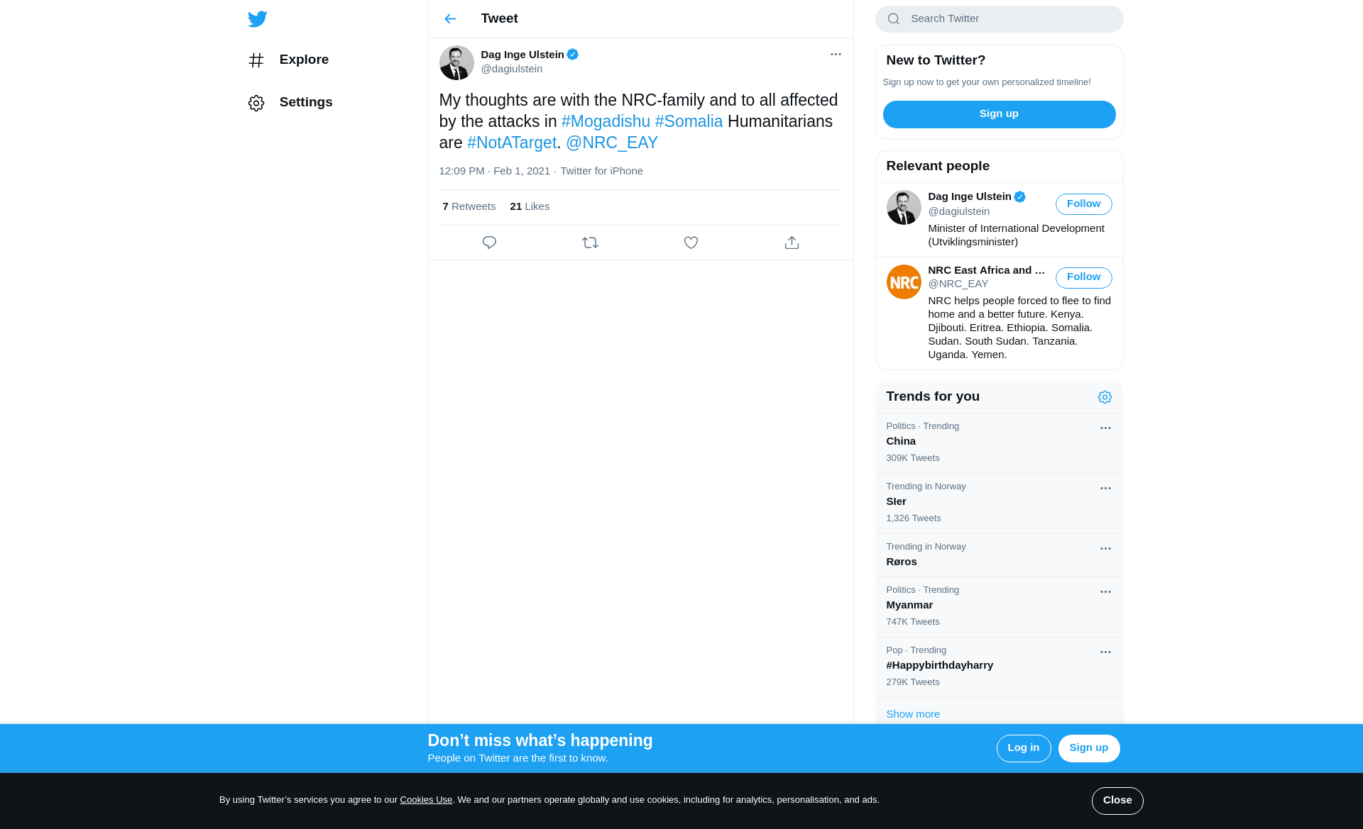 My thoughts are with the NRC-family and to all affected by the attacks in #Mogadishu #Somalia Humanitarians are #NotATarget. @NRC_EAY