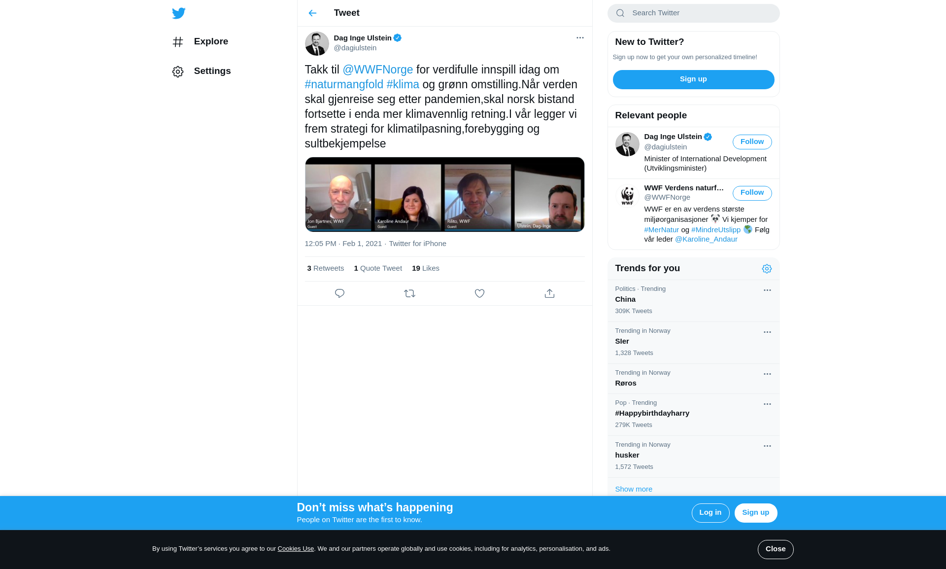 Takk til @WWFNorge for verdifulle innspill idag om #naturmangfold #klima og grønn omstilling.Når verden skal gjenreise seg etter pandemien,skal norsk bistand fortsette i enda mer klimavennlig retning.I vår legger vi frem strategi for klimatilpasning,forebygging og sultbekjempelse https://t.co/dNndtDS8nJ