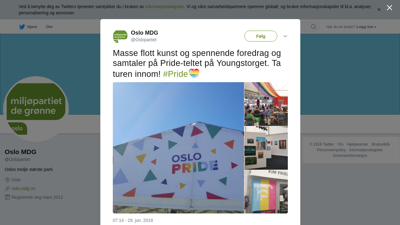 RT @Oslopartiet: Masse flott kunst og spennende foredrag og samtaler på Pride-teltet på Youngstorget. Ta turen innom! #Pride https://t.co/GqOmk2w0HY