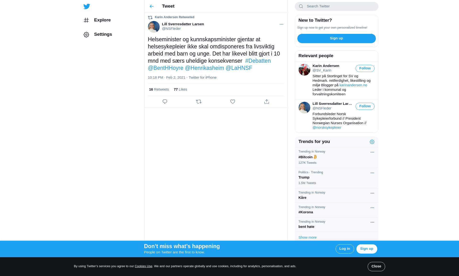 RT @NSFleder: Helseminister og kunnskapsminister gjentar at helsesykepleier ikke skal omdisponeres fra livsviktig arbeid med barn og unge. Det har likevel blitt gjort i 10 mnd med særs uheldige konsekvenser #Debatten @BentHHoyre @Henrikasheim @LaHNSF