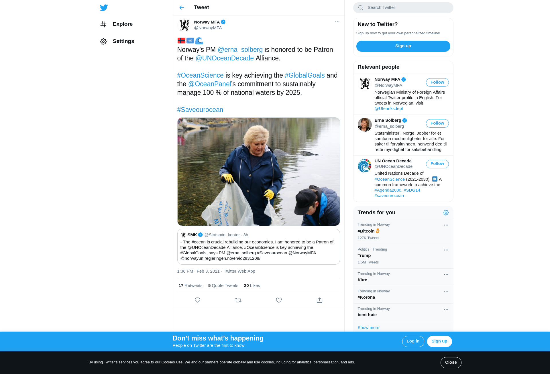 The Prime Minister has agreed to be a Patron of the Ocean Decade Alliance. Norway is now one of the largest contributors to the UN Decade of Ocean Science for Sustainable Development (2021–2030).