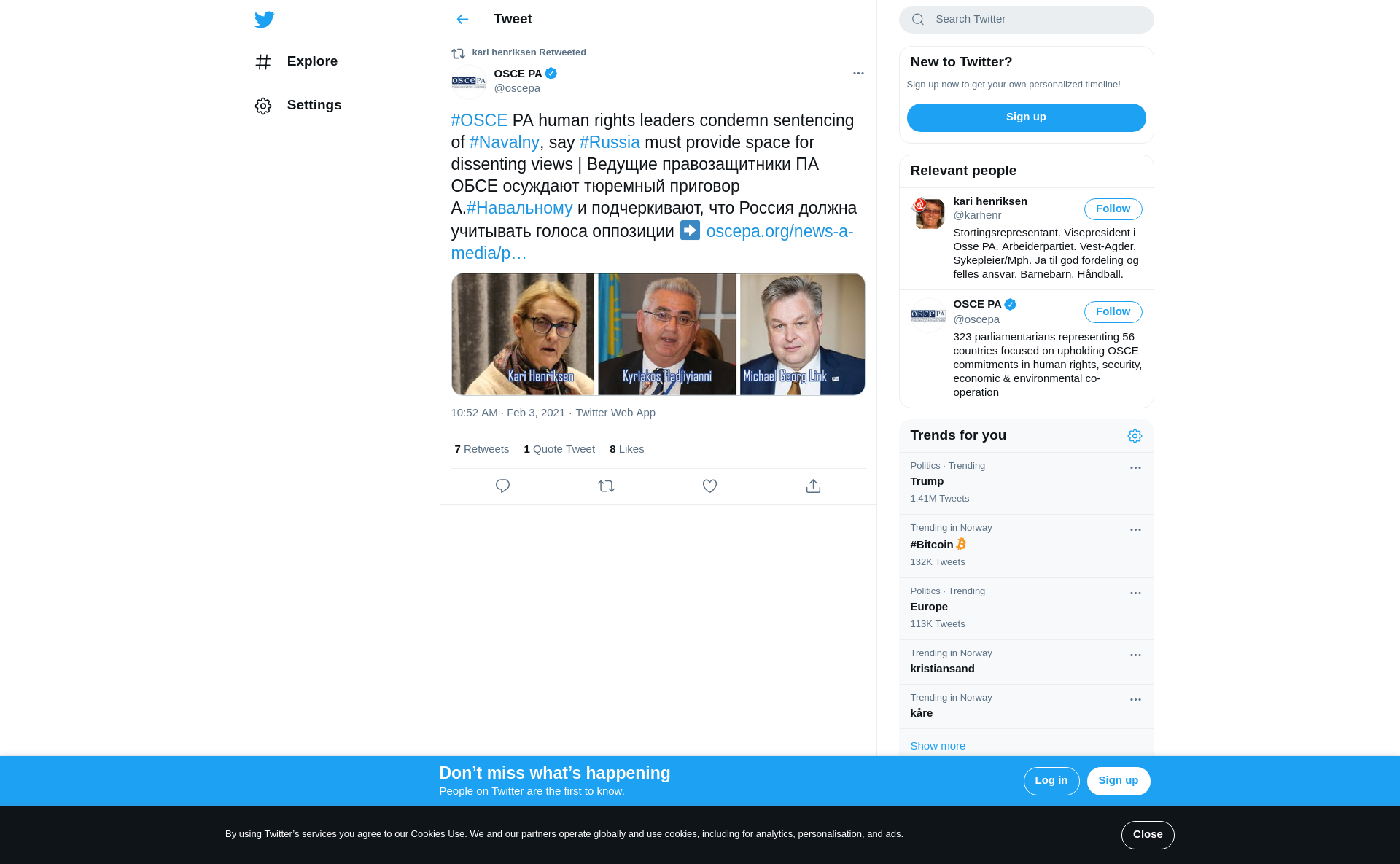 RT @oscepa: #OSCE PA human rights leaders condemn sentencing of #Navalny, say #Russia must provide space for dissenting views | Ведущие правозащитники ПА ОБСЕ осуждают тюремный приговор А.#Навальному и подчеркивают, что Россия должна учитывать голоса оппозиции ➡️ https://t.co/UNjPxAsm86 https://t.co/rdpq4DBKbi