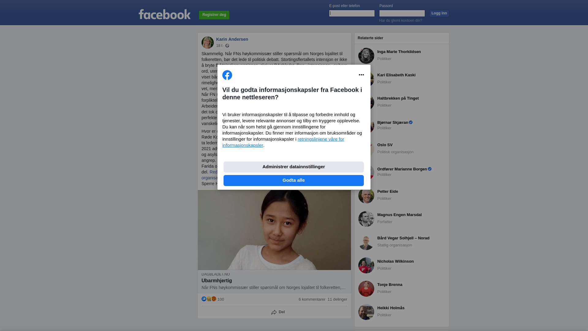 Hvor er du Jonas Gahr Støre, du som har vært utenriksminister og leder i Røde Kors. Du vet dette, men du gjemmer deg som de andre isteden for å ta lederrollen i å holde våre humanitære internasjonale forpliktelser. Nå i 2021 advarer Unhcr om økende bruk av tvang og bortvisning av flyktninger og asylsøkere i Europa og FN advarer om at selve asylinstituttet er under angrep. Norge er medskyldig og dette må vi samle oss og bekjempe nå, for Farida og for rettighetene til folk som rammes av forfølgelse og krig. Lik og del. Redd Barna Flyktninghjelpen Norsk Folkehjelp NOAS - Norsk organisasjon for asylsøkere Dagbladet Dråpen i Havet Arild Humlen Kine Sperre Horsbøl