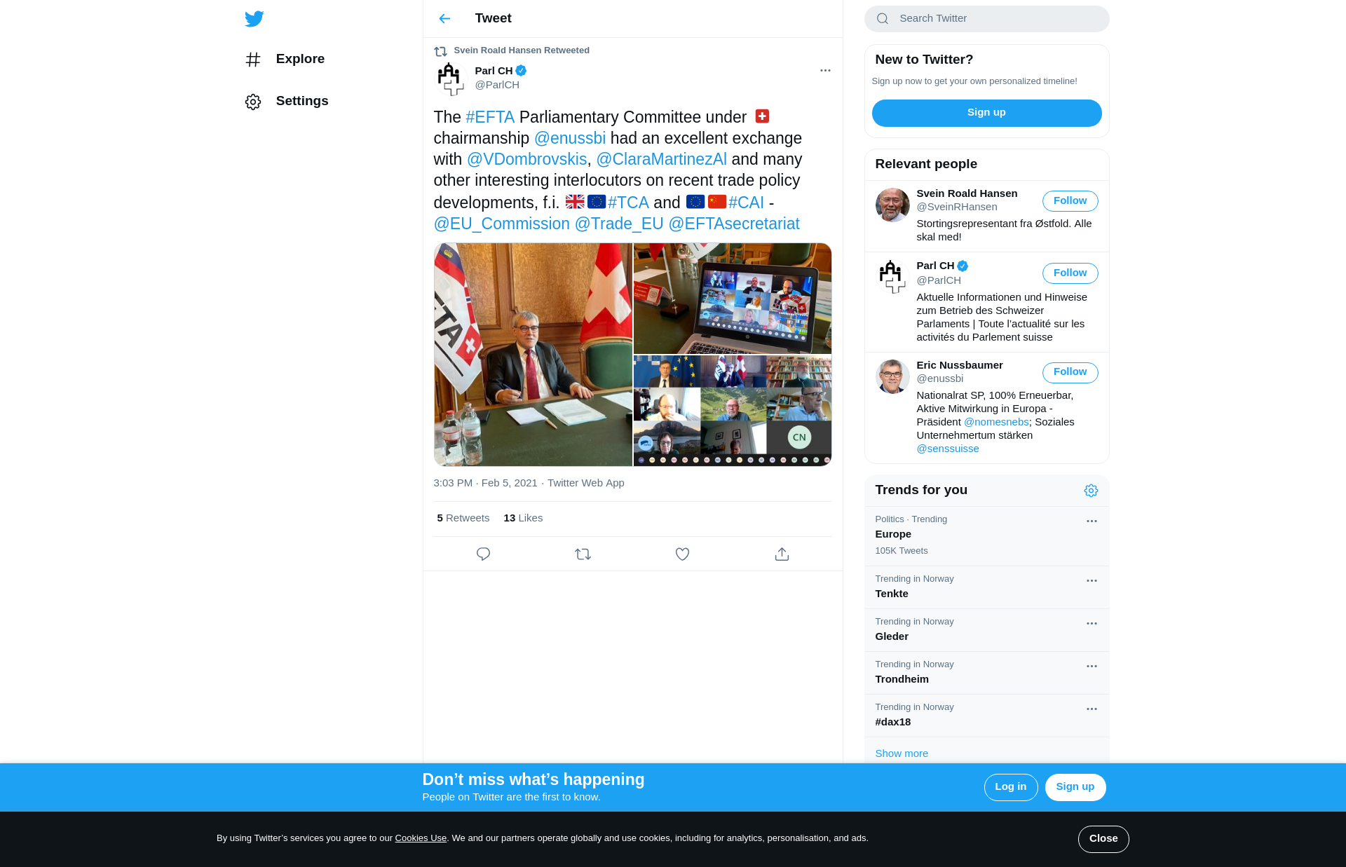 RT @ParlCH: The #EFTA Parliamentary Committee under 🇨🇭chairmanship @enussbi had an excellent exchange with @VDombrovskis, @ClaraMartinezAl and many other interesting interlocutors on recent trade policy developments, f.i. 🇬🇧🇪🇺#TCA and 🇪🇺🇨🇳#CAI - @EU_Commission @Trade_EU @EFTAsecretariat https://t.co/WzzUvQyQZs