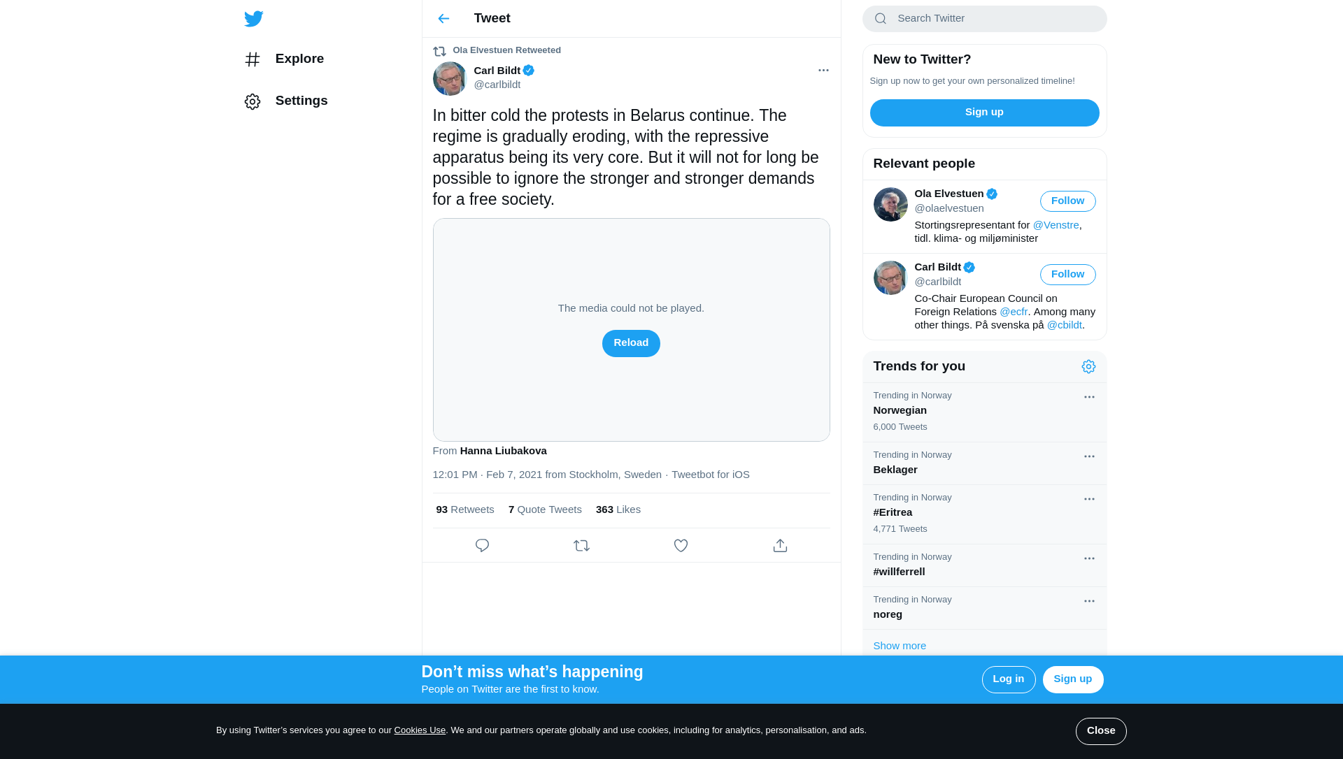 RT @carlbildt: In bitter cold the protests in Belarus continue. The regime is gradually eroding, with the repressive apparatus being its very core. But it will not for long be possible to ignore the stronger and stronger demands for a free society. https://t.co/s9beI8ANFw