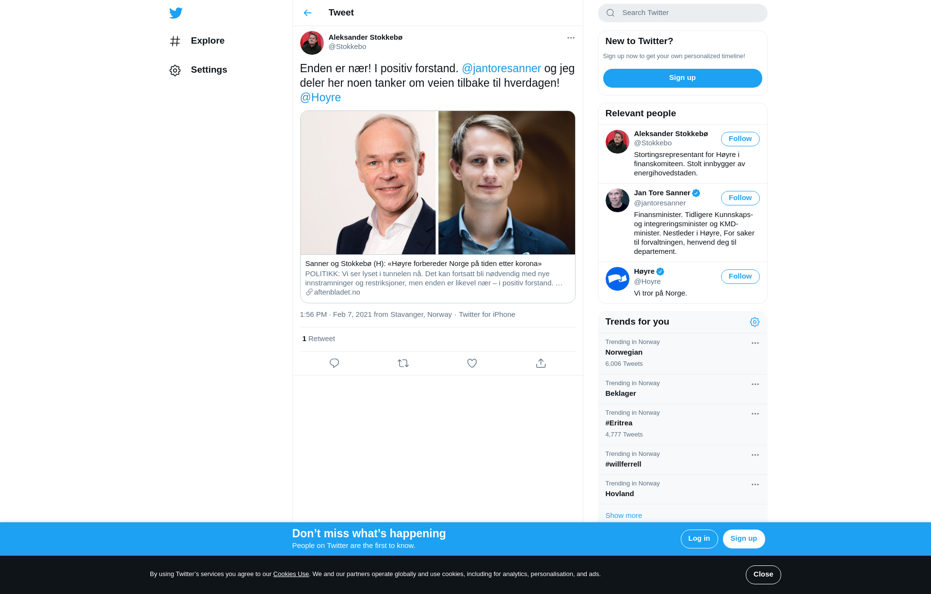 Sanner og Stokkebø (H): «Høyre forbereder Norge på tiden etter korona»