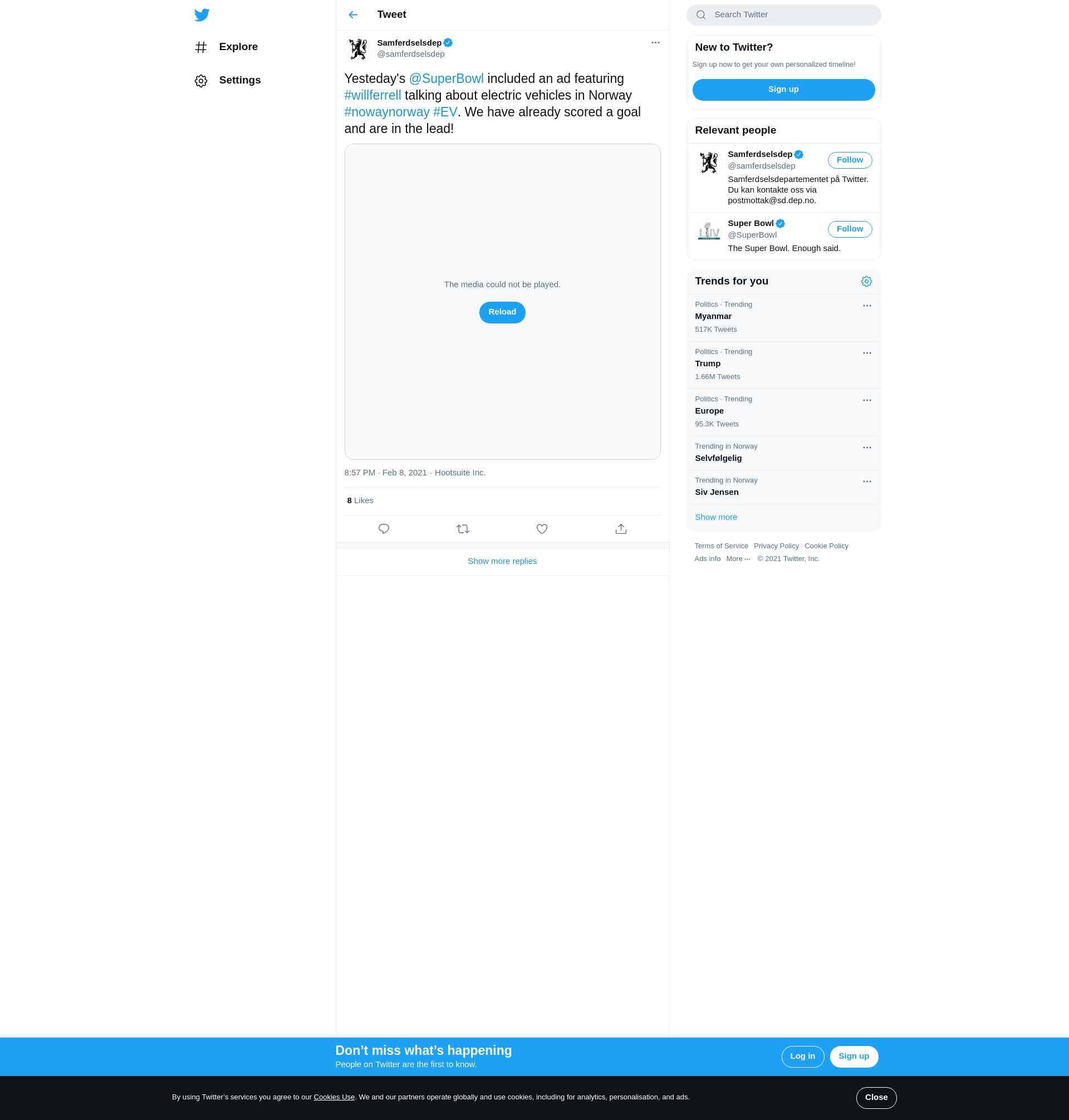 Yesteday's @SuperBowl included an ad featuring #willferrell talking about electric vehicles in Norway #nowaynorway #EV. We have already scored a goal and are in the lead! https://t.co/2IQGOWhwri