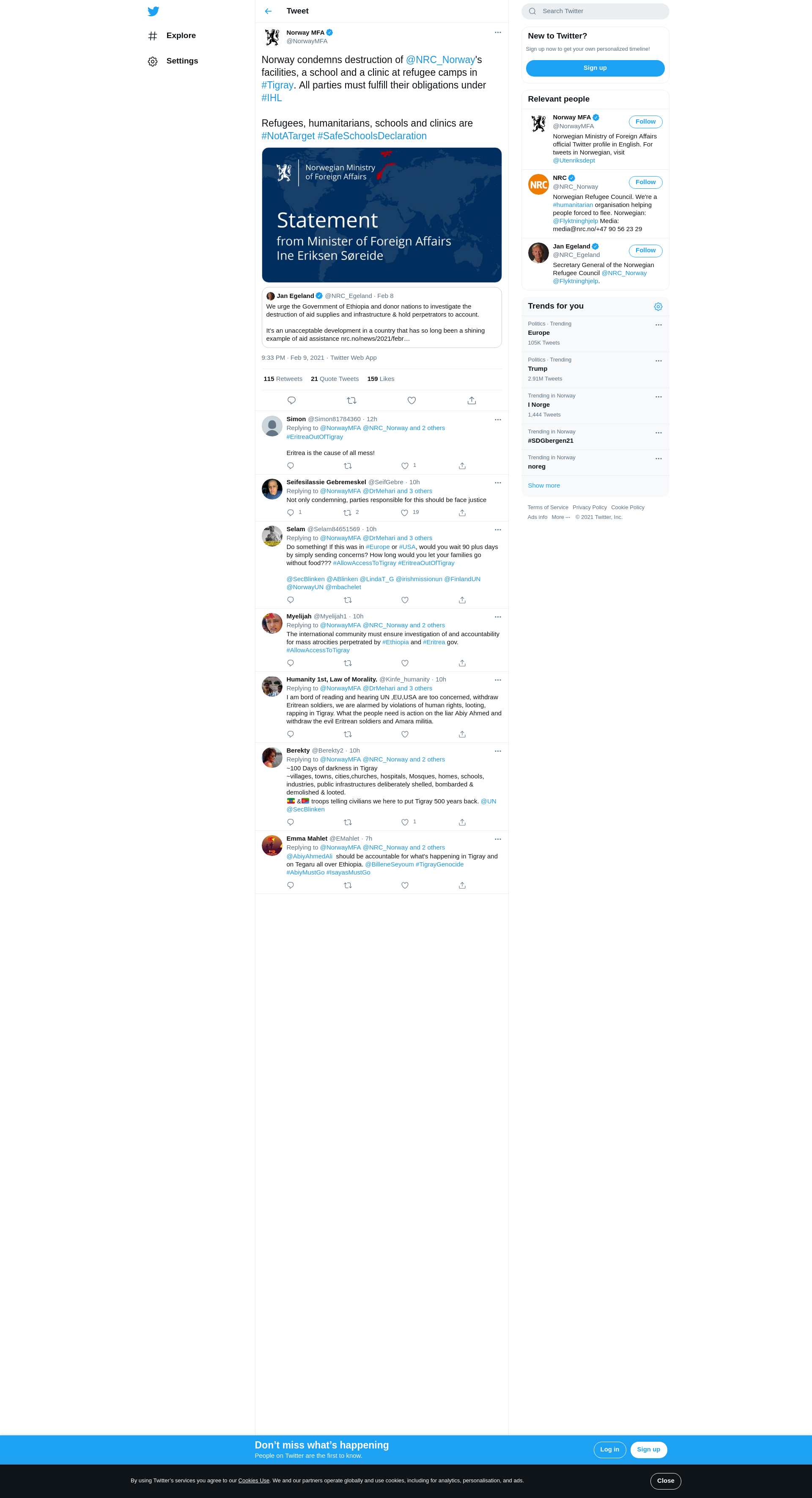 Norway condemns destruction of @NRC_Norway's facilities, a school and a clinic at refugee camps in #Tigray. All parties must fulfill their obligations under #IHL