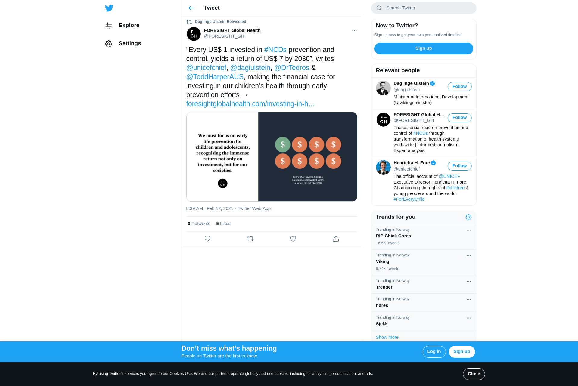 RT @FORESIGHT_GH: “Every US$ 1 invested in #NCDs prevention and control, yields a return of US$ 7 by 2030”, writes @unicefchief, @dagiulstein, @DrTedros & @ToddHarperAUS, making the financial case for investing in our children’s health through early prevention efforts →