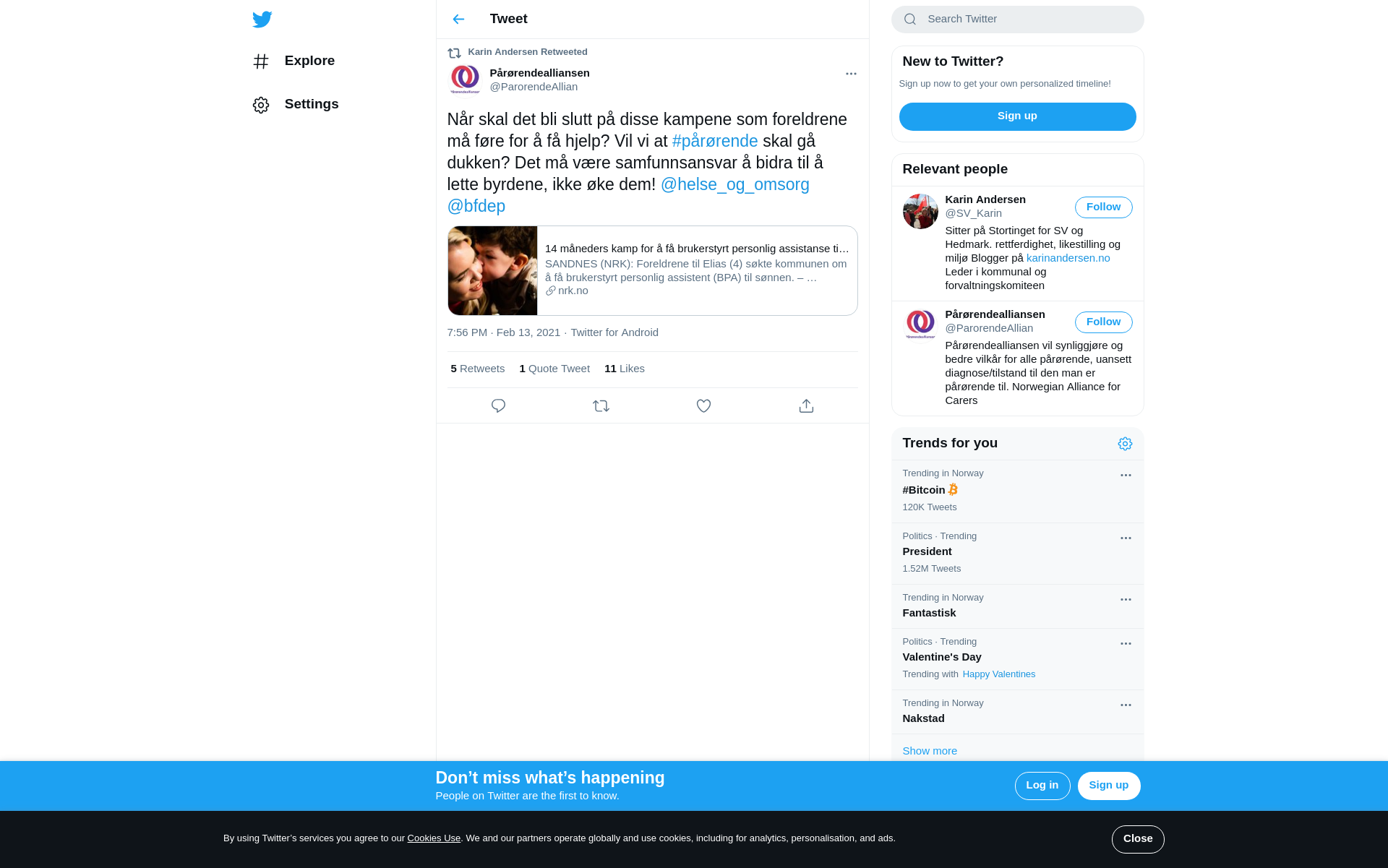 RT @ParorendeAllian: Når skal det bli slutt på disse kampene som foreldrene må føre for å få hjelp? Vil vi at #pårørende skal gå dukken? Det må være samfunnsansvar å bidra til å lette byrdene, ikke øke dem! @helse_og_omsorg @bfdep https://t.co/aqPJNhcyec