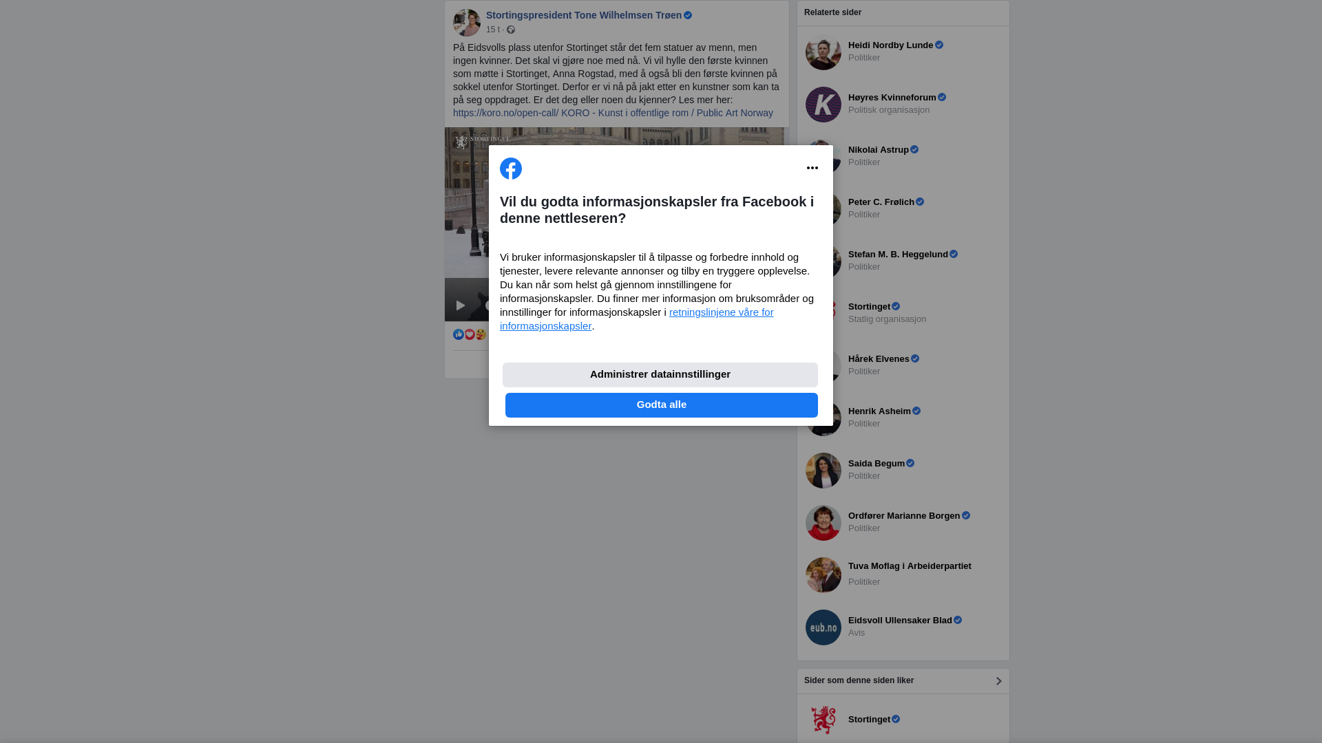 På Eidsvolls plass utenfor Stortinget står det fem statuer av menn, men ingen kvinner. Det skal vi gjøre noe med nå. Vi vil hylle den første kvinnen som møtte i Stortinget, Anna Rogstad, med å også bli den første kvinnen på sokkel utenfor Stortinget. Derfor er vi nå på jakt etter en kunstner som kan ta på seg oppdraget. Er det deg eller noen du kjenner? Les mer her: https://koro.no/open-call/ KORO - Kunst i offentlige rom / Public Art Norway