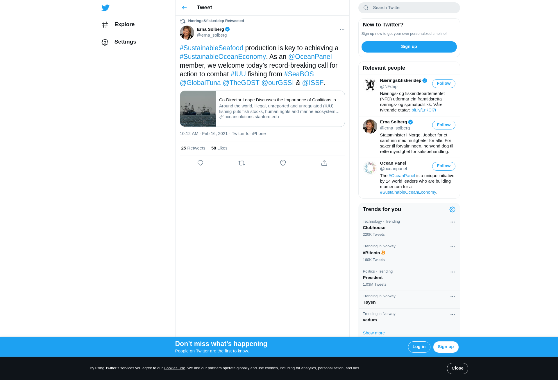 RT @erna_solberg: #SustainableSeafood production is key to achieving a #SustainableOceanEconomy. As an @OceanPanel member, we welcome today’s record-breaking call for action to combat #IUU fishing from #SeaBOS @GlobalTuna @TheGDST @ourGSSI & @ISSF. https://t.co/MPugdAG2Wg
