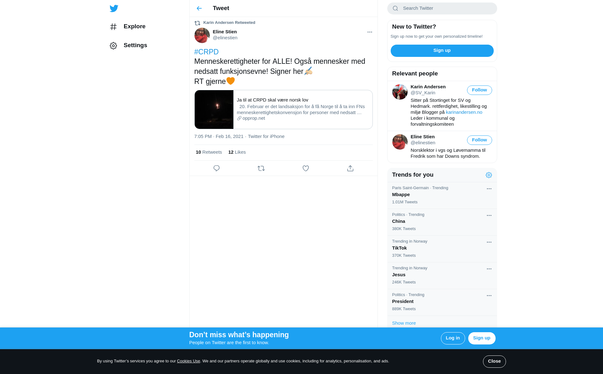 RT @elinestien: #CRPD Menneskerettigheter for ALLE! Også mennesker med nedsatt funksjonsevne! Signer her✍🏼 RT gjerne🧡 https://t.co/2Y40XEb…