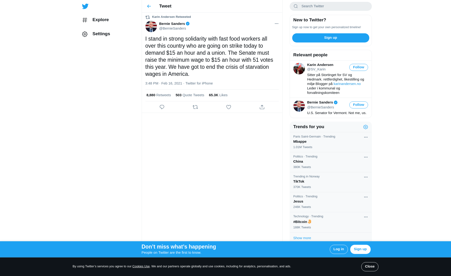 RT @BernieSanders: I stand in strong solidarity with fast food workers all over this country who are going on strike today to demand $15 an hour and a union. The Senate must raise the minimum wage to $15 an hour with 51 votes this year. We have got to end the crisis of starvation wages in America.