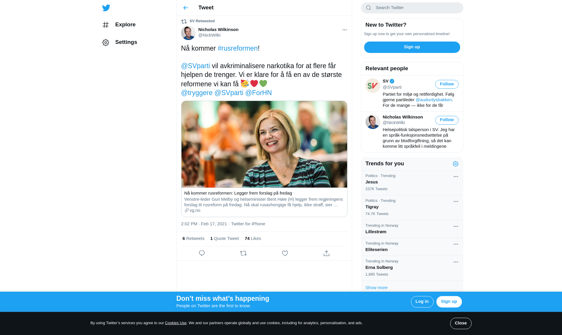 RT @NickWilki: Nå kommer #rusreformen! @SVparti vil avkriminalisere narkotika for at flere får hjelpen de trenger. Vi er klare for å få e…
