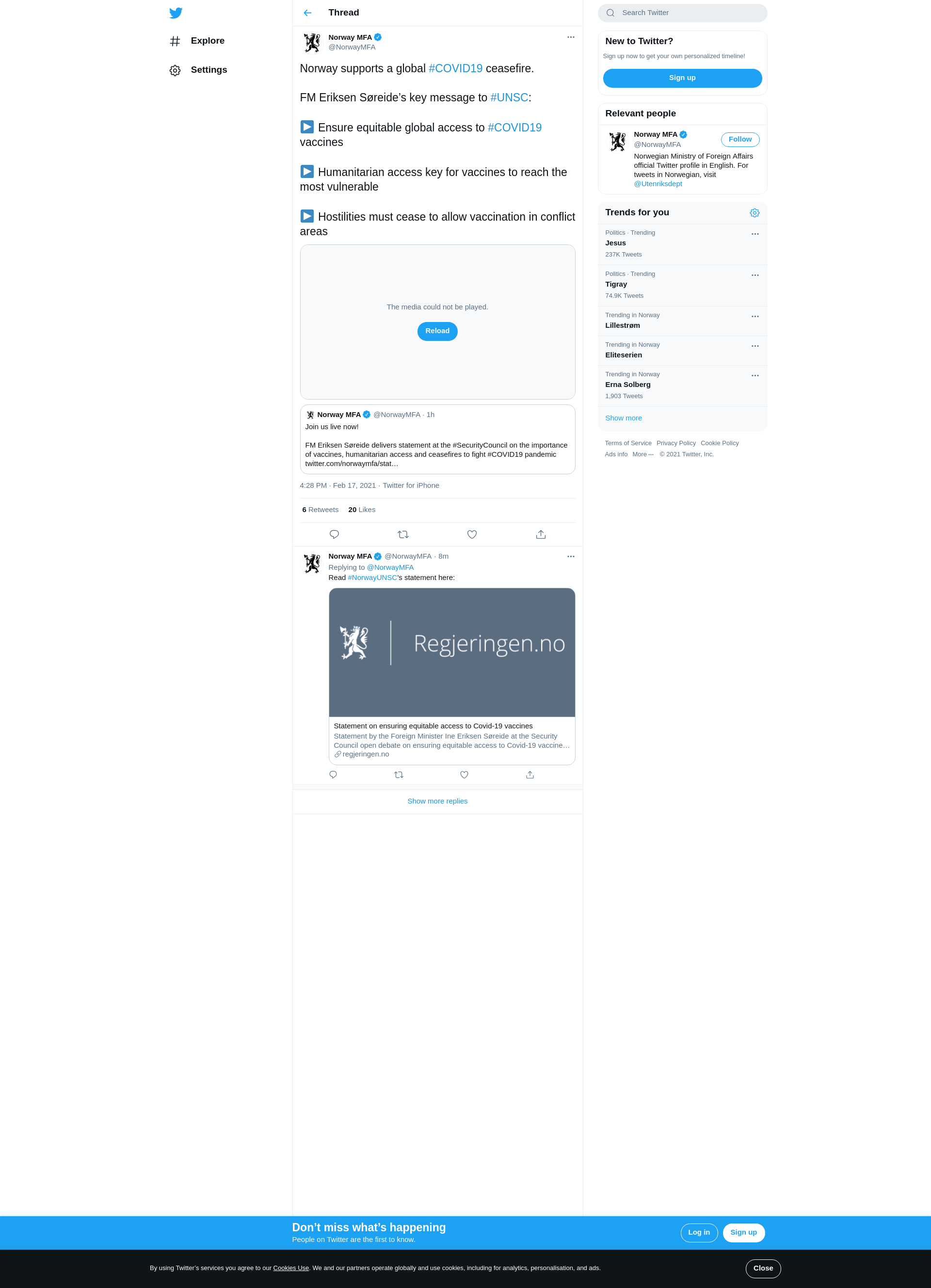 Norway supports a global #COVID19 ceasefire.