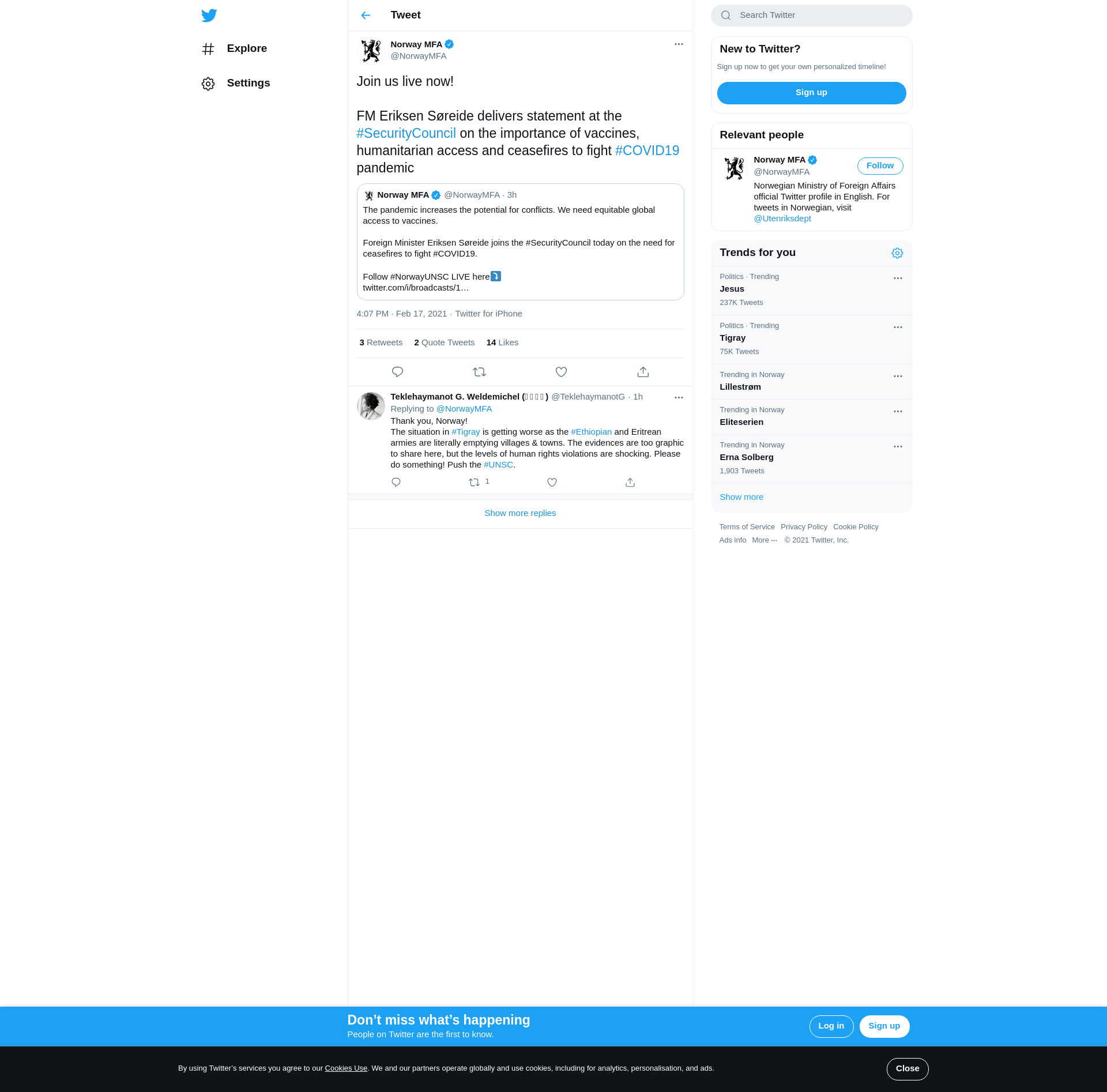 FM Eriksen Søreide delivers statement at the #SecurityCouncil on the importance of vaccines, humanitarian access and ceasefires to fight #COVID19 pandemic