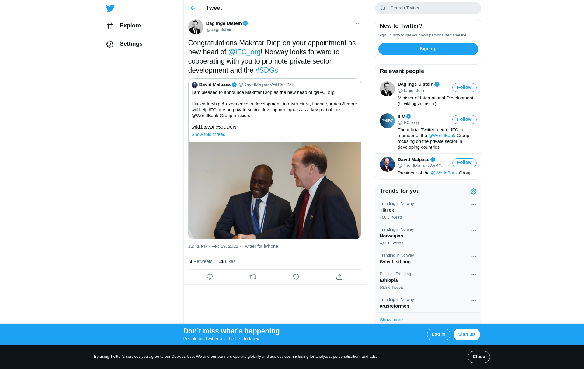 Congratulations Makhtar Diop on your appointment as new head of @IFC_org! Norway looks forward to cooperating with you to promote private sector development and the #SDGs