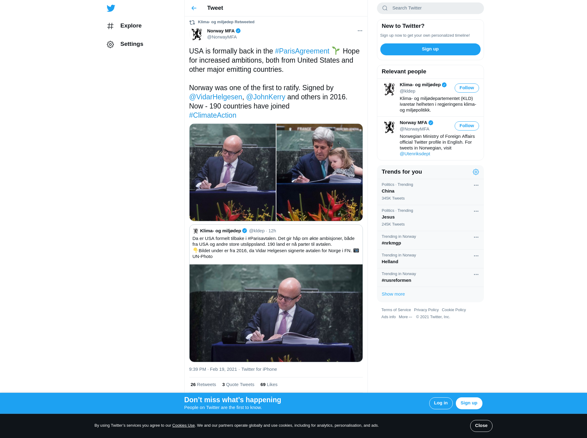 Norway was one of the first to ratify. Signed by @VidarHelgesen, @JohnKerry and others in 2016.