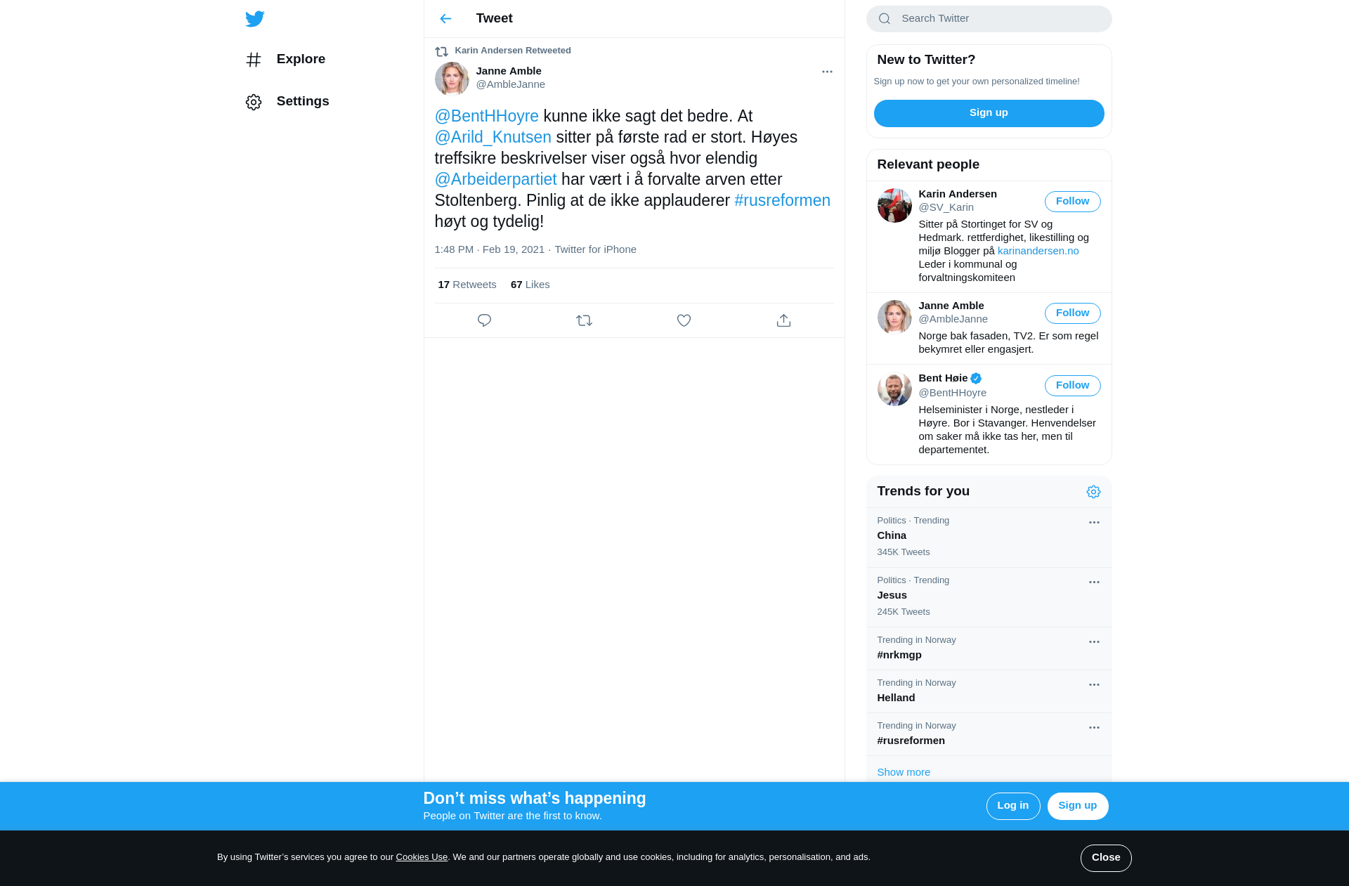 RT @AmbleJanne: @BentHHoyre kunne ikke sagt det bedre. At @Arild_Knutsen sitter på første rad er stort. Høyes treffsikre beskrivelser viser også hvor elendig @Arbeiderpartiet har vært i å forvalte arven etter Stoltenberg. Pinlig at de ikke applauderer #rusreformen høyt og tydelig!