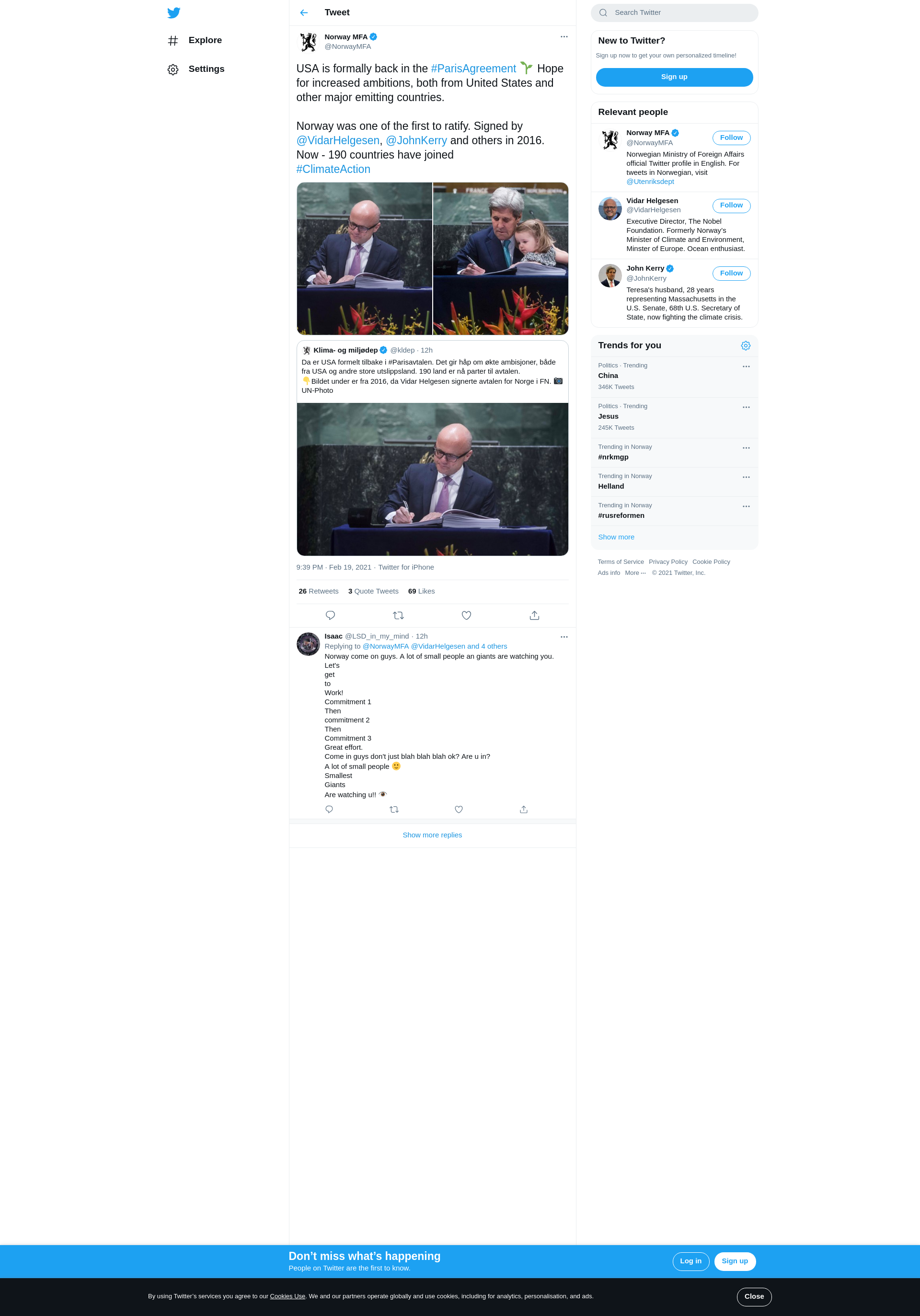 Norway was one of the first to ratify. Signed by @VidarHelgesen, @JohnKerry and others in 2016.
