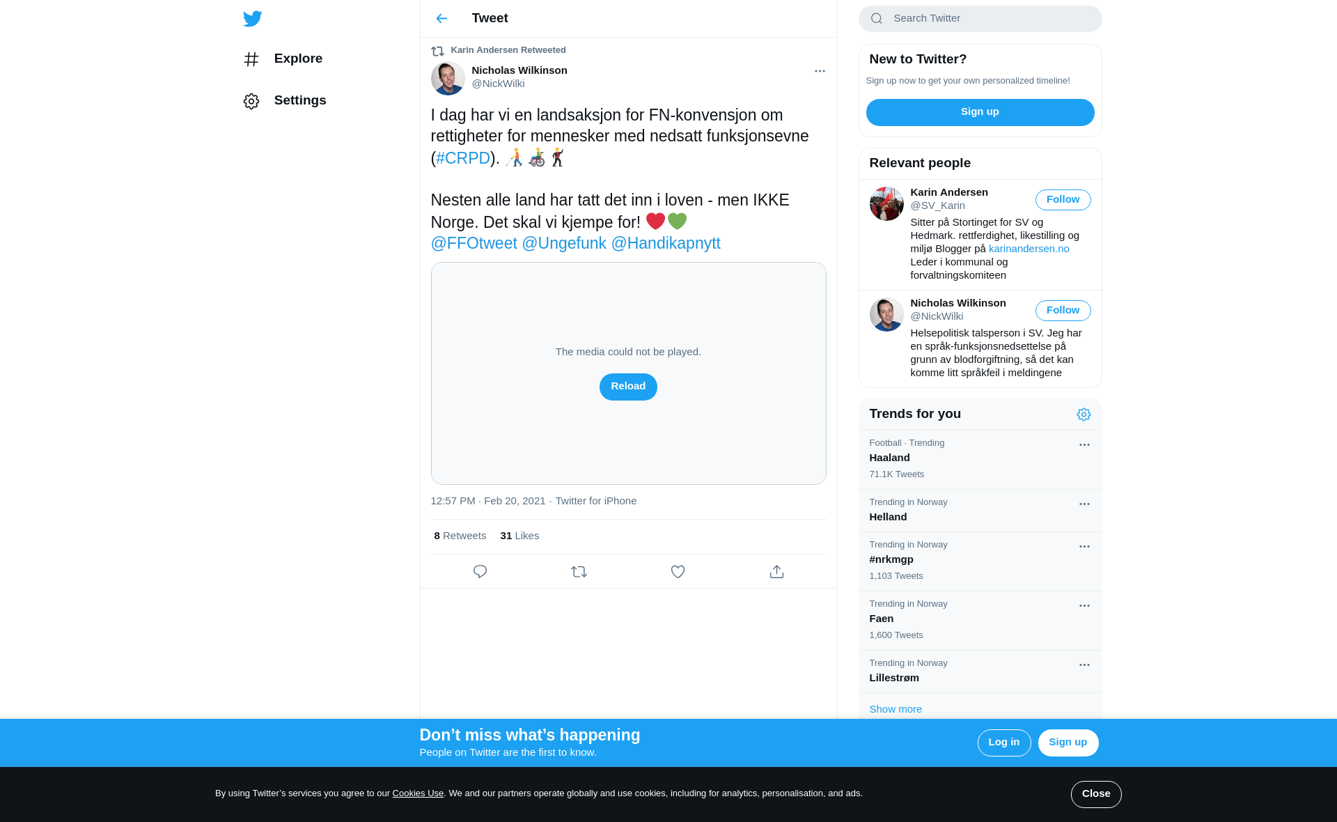 RT @NickWilki: I dag har vi en landsaksjon for FN-konvensjon om rettigheter for mennesker med nedsatt funksjonsevne (#CRPD). 🧑🦯👨🦽🕺 Neste…