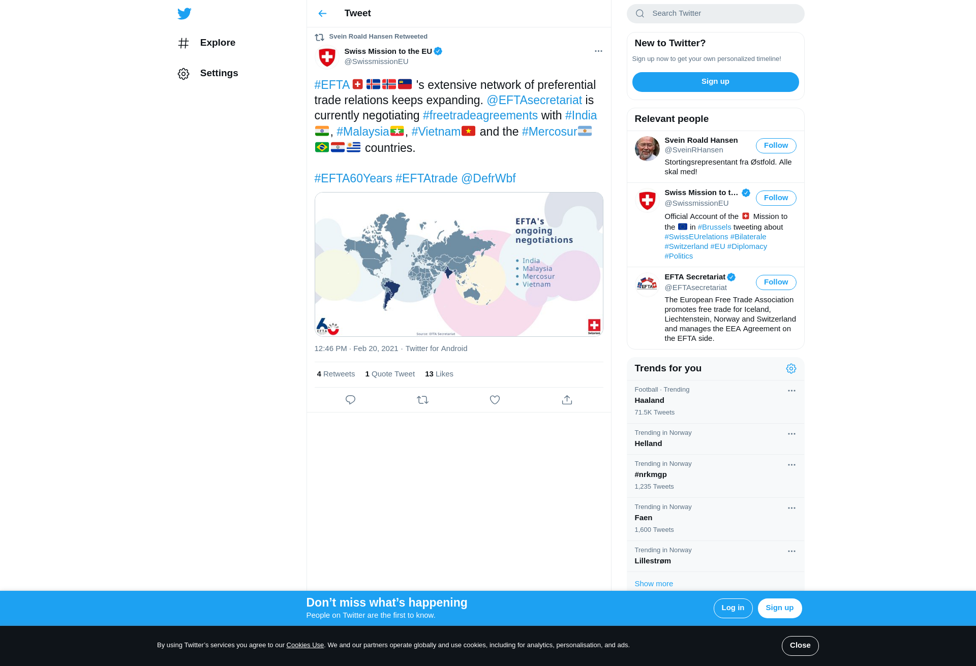 RT @SwissmissionEU: #EFTA🇨🇭🇮🇸🇳🇴🇱🇮 's extensive network of preferential trade relations keeps expanding. @EFTAsecretariat is currently negotiating #freetradeagreements with #India🇮🇳, #Malaysia🇲🇲, #Vietnam🇻🇳 and the #Mercosur🇦🇷🇧🇷🇵🇾🇺🇾 countries.