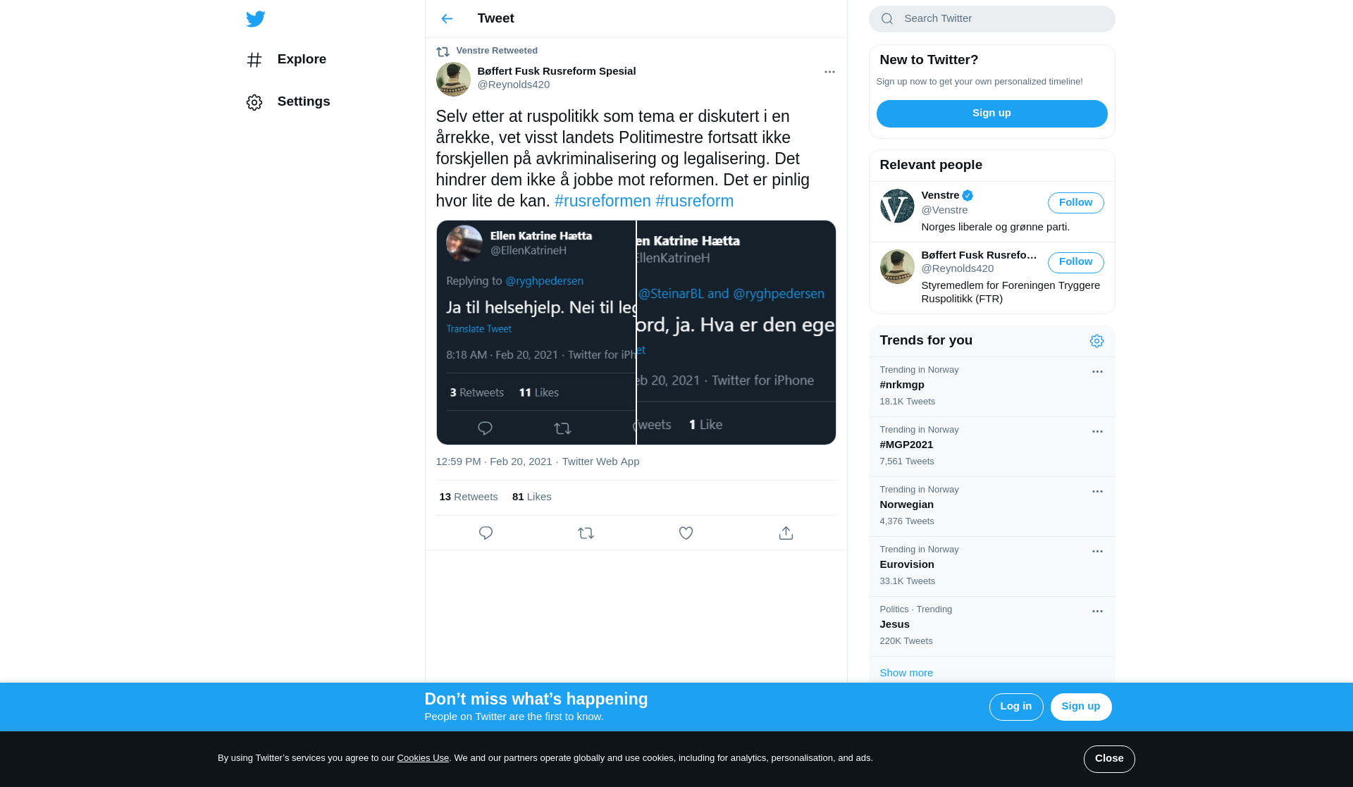 RT @Reynolds420: Selv etter at ruspolitikk som tema er diskutert i en årrekke, vet visst landets Politimestre fortsatt ikke forskjellen på avkriminalisering og legalisering. Det hindrer dem ikke å jobbe mot reformen. Det er pinlig hvor lite de kan. #rusreformen #rusreform https://t.co/l7nOCE4uUO