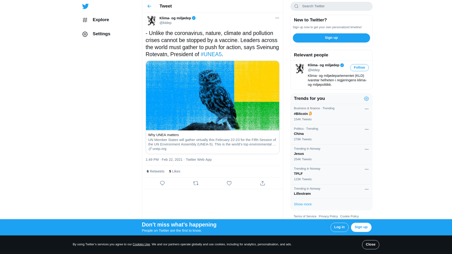 - Unlike the coronavirus, nature, climate and pollution crises cannot be stopped by a vaccine. Leaders across the world must gather to push for action, says Sveinung Rotevatn, President of #UNEA5.