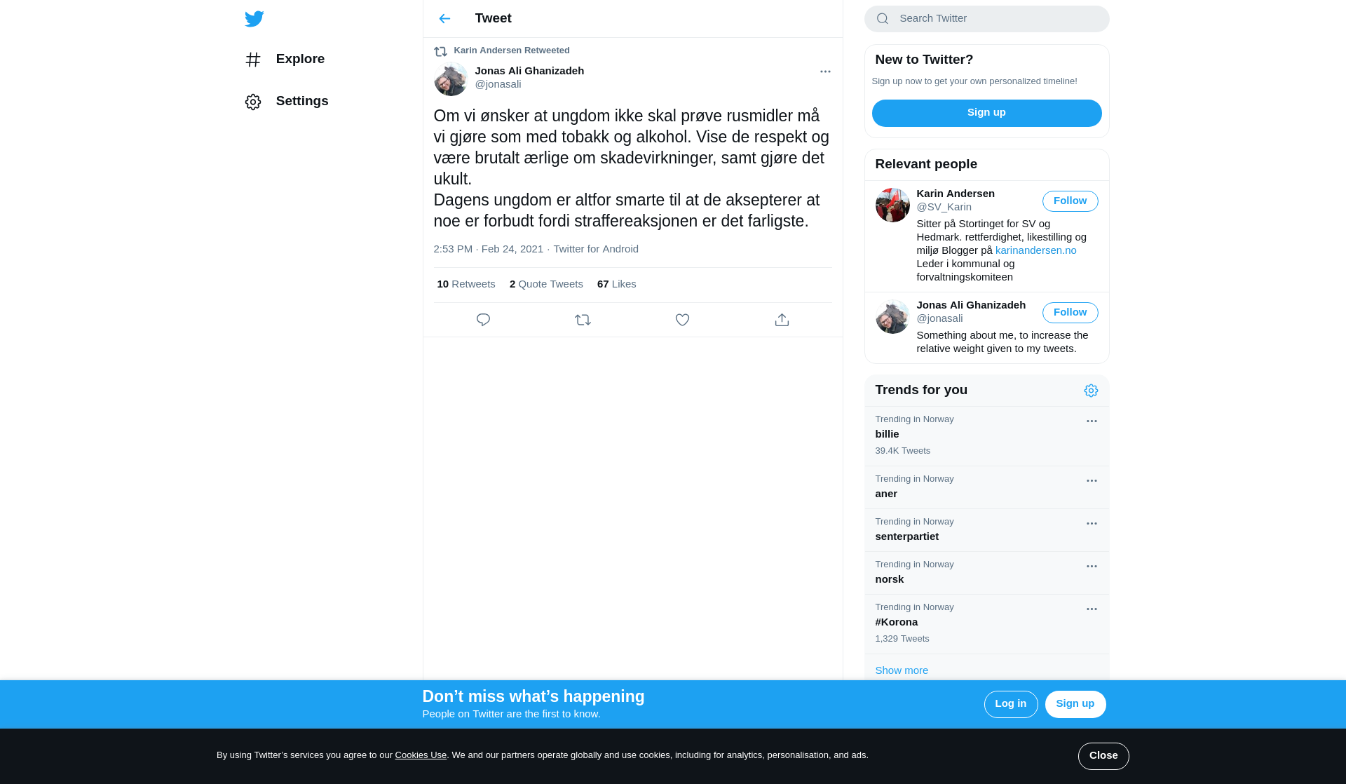 RT @jonasali: Om vi ønsker at ungdom ikke skal prøve rusmidler må vi gjøre som med tobakk og alkohol. Vise de respekt og være brutalt ærlige om skadevirkninger, samt gjøre det ukult.