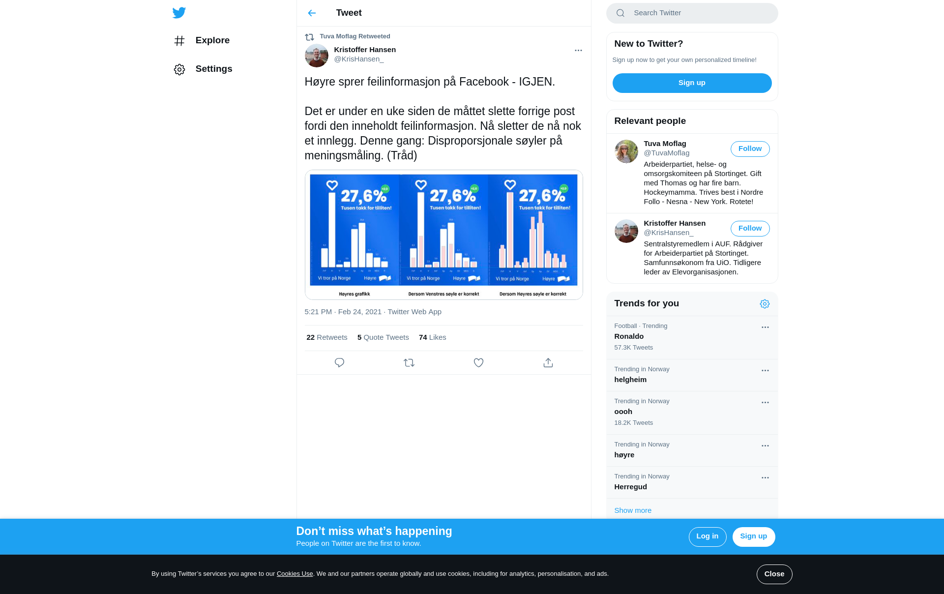 RT @KrisHansen_: Høyre sprer feilinformasjon på Facebook - IGJEN. Det er under en uke siden de måttet slette forrige post fordi den inneh…