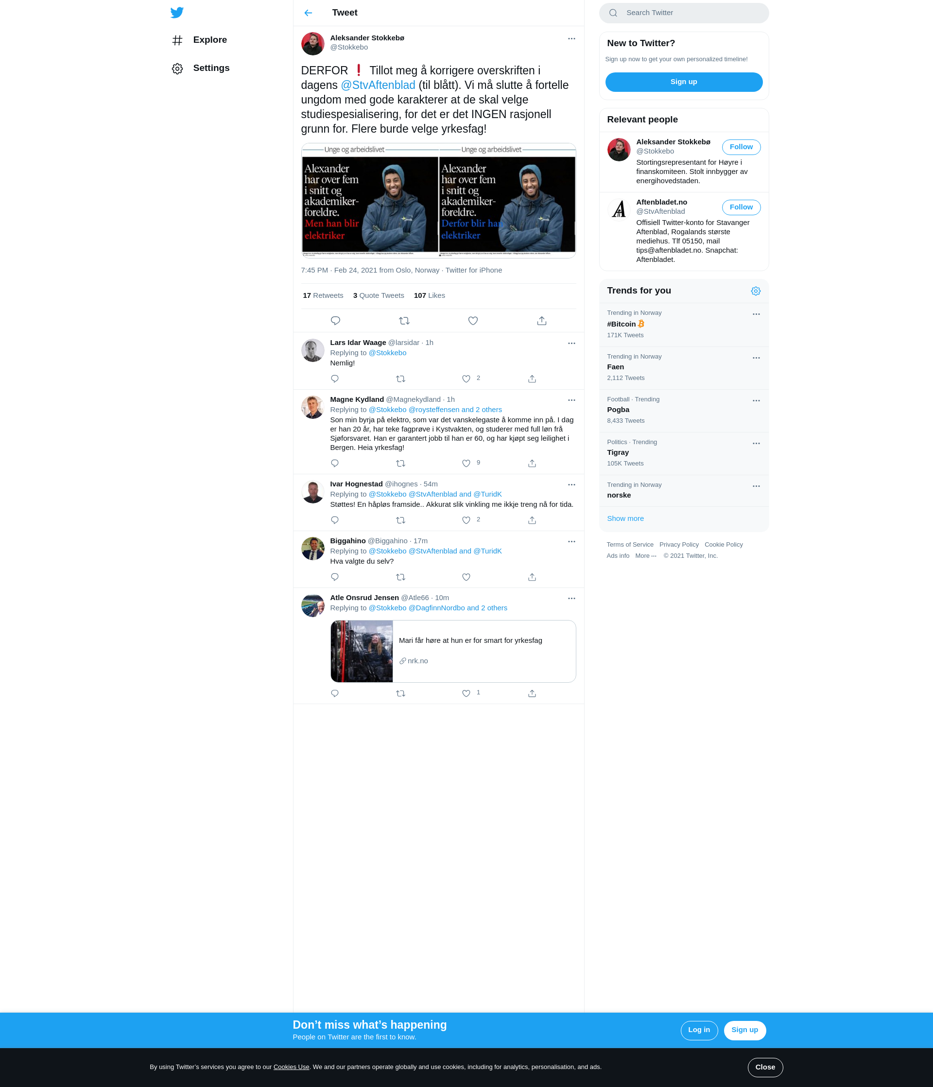 DERFOR ❗️ Tillot meg å korrigere overskriften i dagens @StvAftenblad (til blått). Vi må slutte å fortelle ungdom med gode karakterer at de skal velge studiespesialisering, for det er det INGEN rasjonell grunn for. Flere burde velge yrkesfag! https://t.co/M6DnYh855x