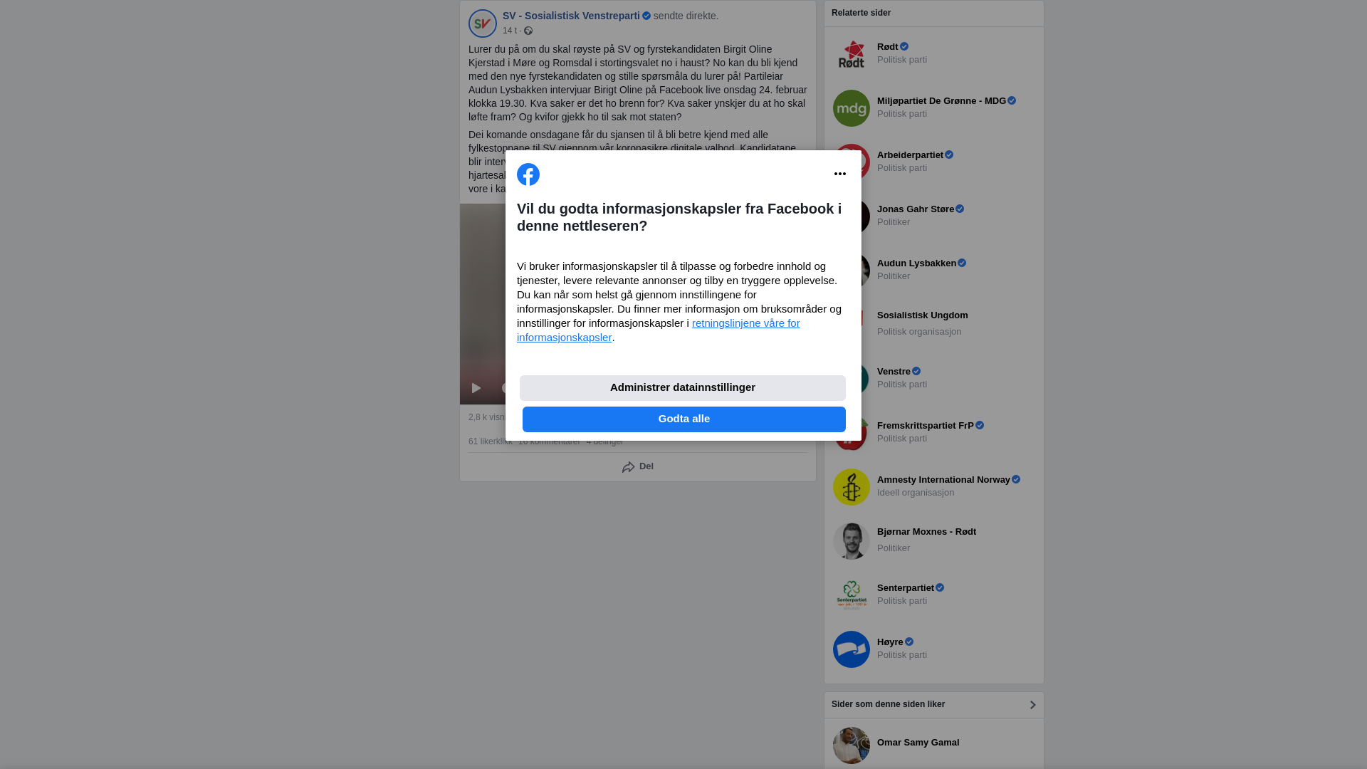 Lurer du på om du skal røyste på SV og fyrstekandidaten Birgit Oline Kjerstad i Møre og Romsdal i stortingsvalet no i haust? No kan du bli kjend med den nye fyrstekandidaten og stille spørsmåla du lurer på! Partileiar Audun Lysbakken intervjuar Birigt Oline på Facebook live onsdag 24. februar klokka 19.30. Kva saker er det ho brenn for? Kva saker ynskjer du at ho skal løfte fram? Og kvifor gjekk ho til sak mot staten?