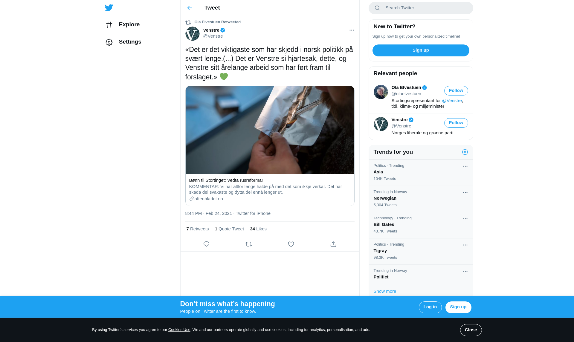 RT @Venstre: «Det er det viktigaste som har skjedd i norsk politikk på svært lenge.(...) Det er Venstre si hjartesak, dette, og Venstre sitt årelange arbeid som har ført fram til forslaget.» 💚 https://t.co/5VeI65mLuB