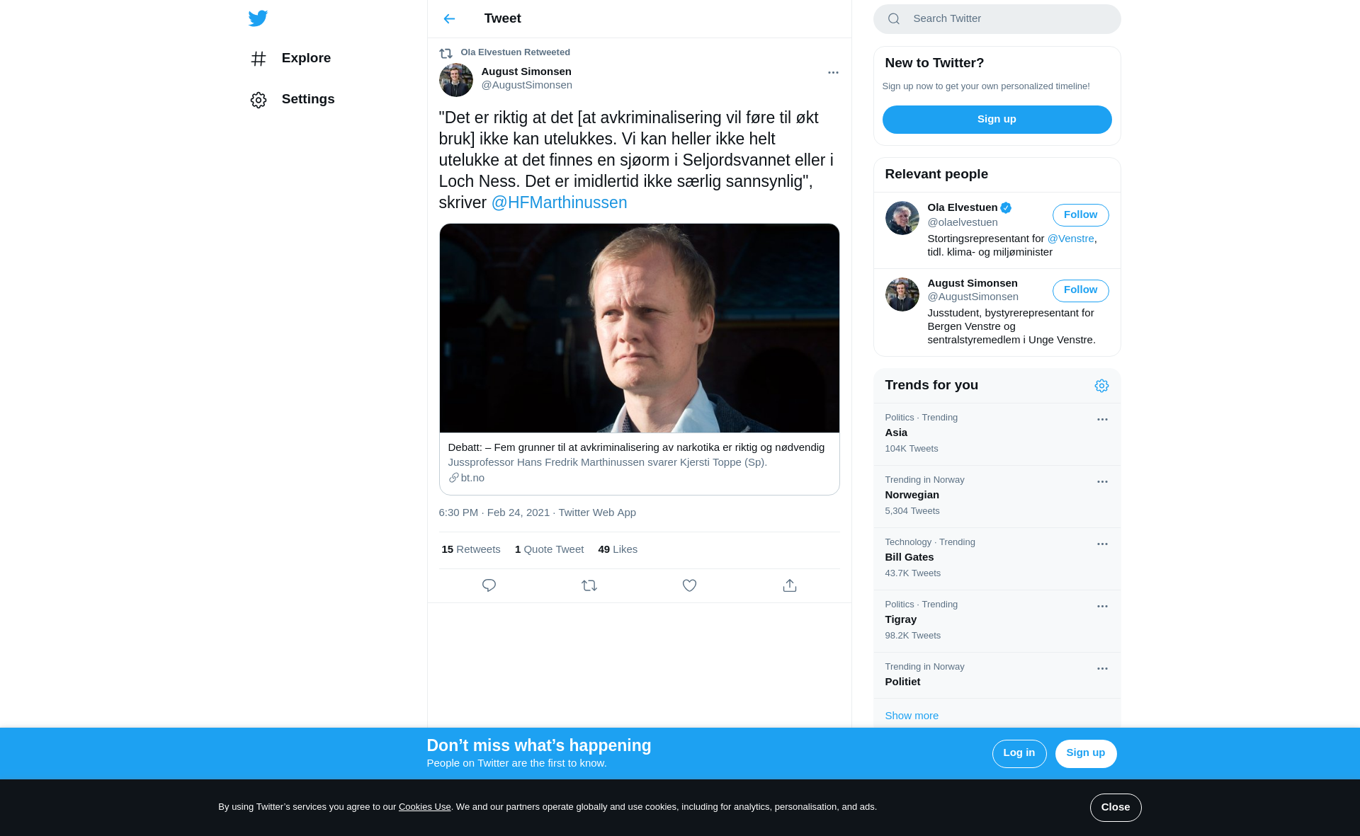 RT @AugustSimonsen: "Det er riktig at det [at avkriminalisering vil føre til økt bruk] ikke kan utelukkes. Vi kan heller ikke helt utelukke at det finnes en sjøorm i Seljordsvannet eller i Loch Ness. Det er imidlertid ikke særlig sannsynlig", skriver @HFMarthinussen https://t.co/1MGsG6nMQP