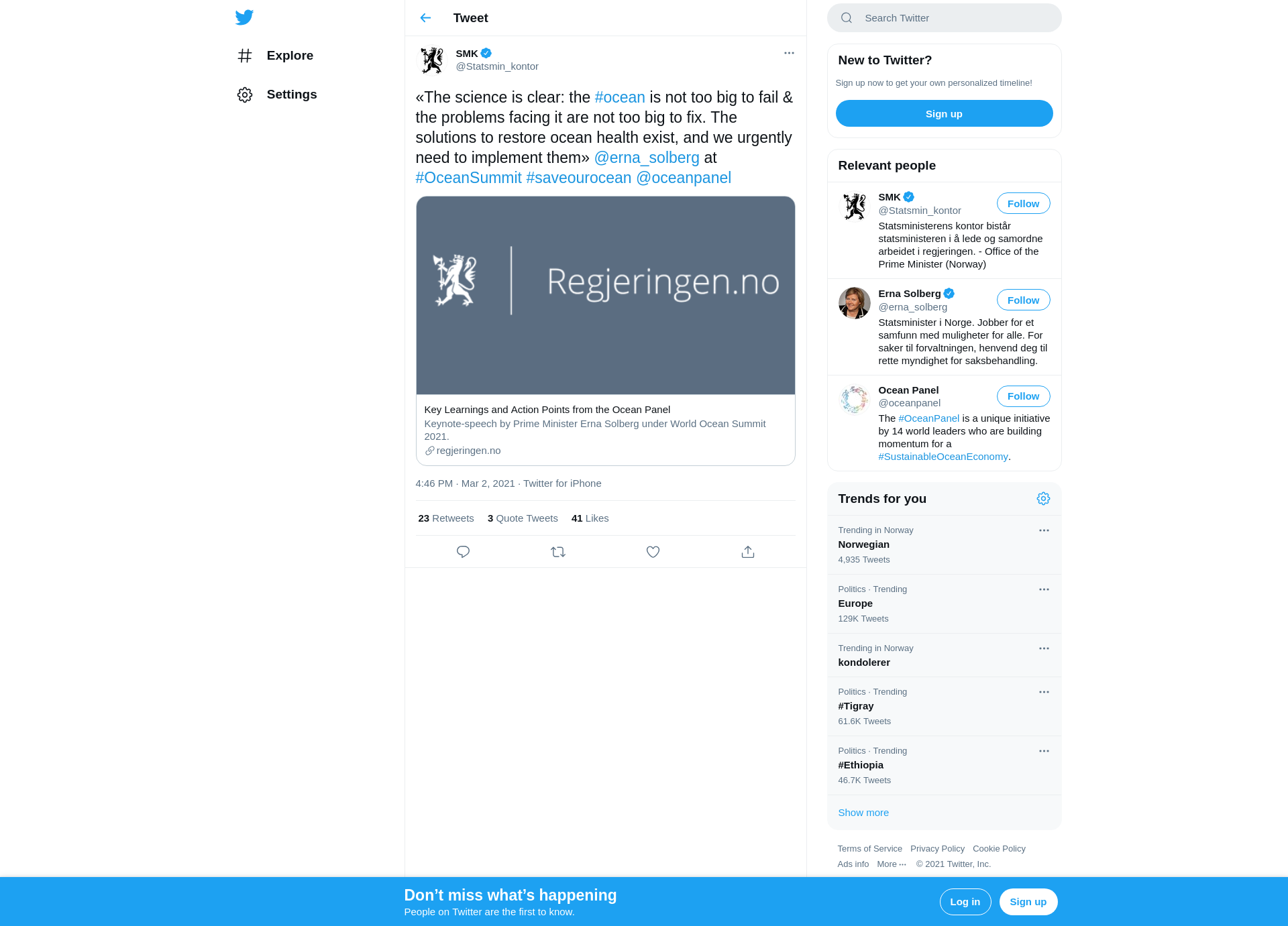 «The science is clear: the #ocean is not too big to fail & the problems facing it are not too big to fix. The solutions to restore ocean health exist, and we urgently need to implement them» @erna_solberg at #OceanSummit #saveourocean @oceanpanel https://t.co/Agdd5ZGr7C
