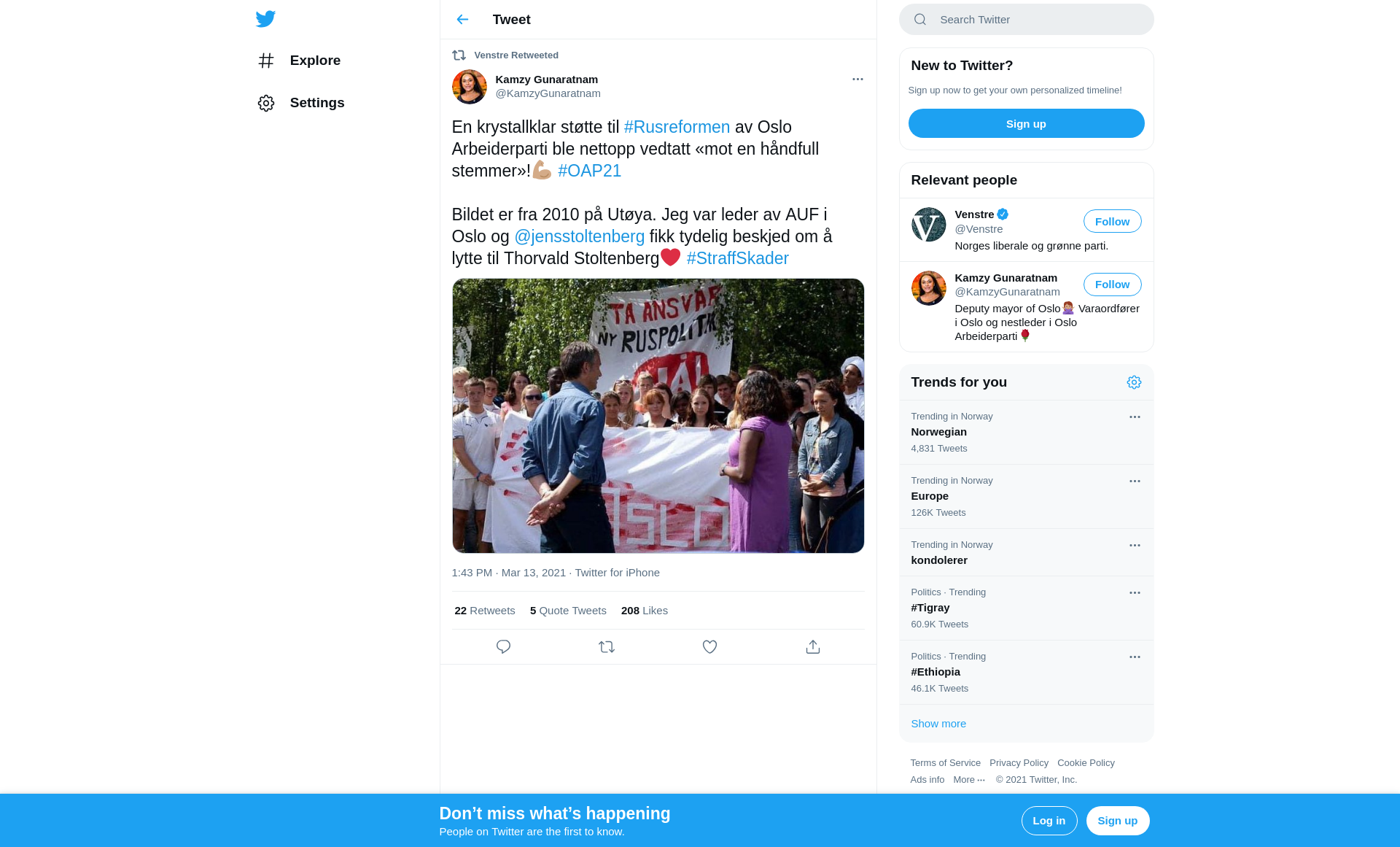 RT @KamzyGunaratnam: En krystallklar støtte til #Rusreformen av Oslo Arbeiderparti ble nettopp vedtatt «mot en håndfull stemmer»!💪🏽 #OAP21