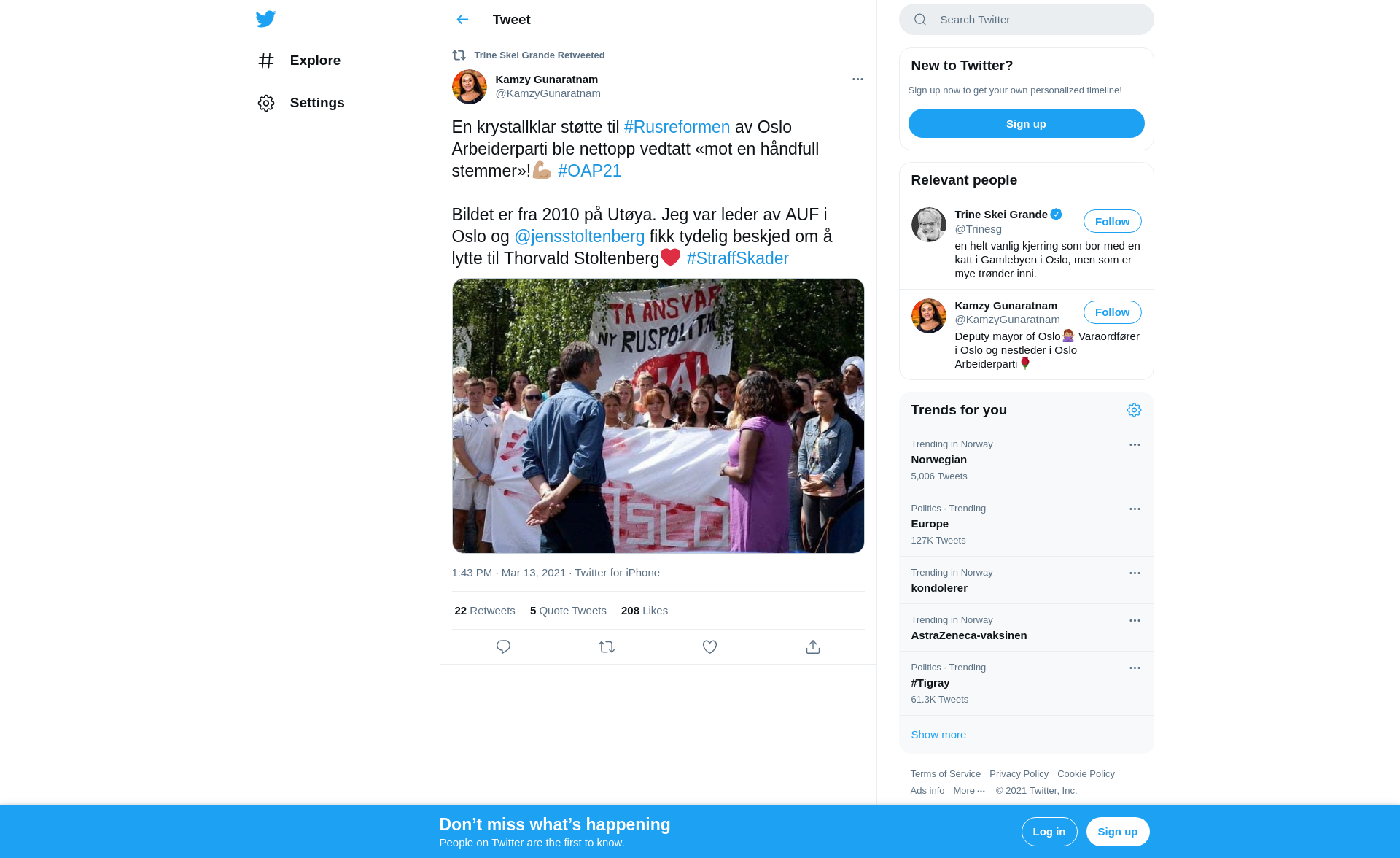 RT @KamzyGunaratnam: En krystallklar støtte til #Rusreformen av Oslo Arbeiderparti ble nettopp vedtatt «mot en håndfull stemmer»!💪🏽 #OAP21