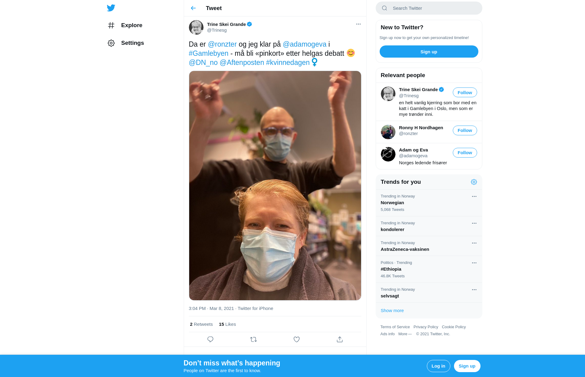 Da er @ronzter og jeg klar på @adamogeva i #Gamlebyen - må bli «pinkort» etter helgas debatt 😊@DN_no @Aftenposten #kvinnedagen https://t.co/9Y46bdjZKG