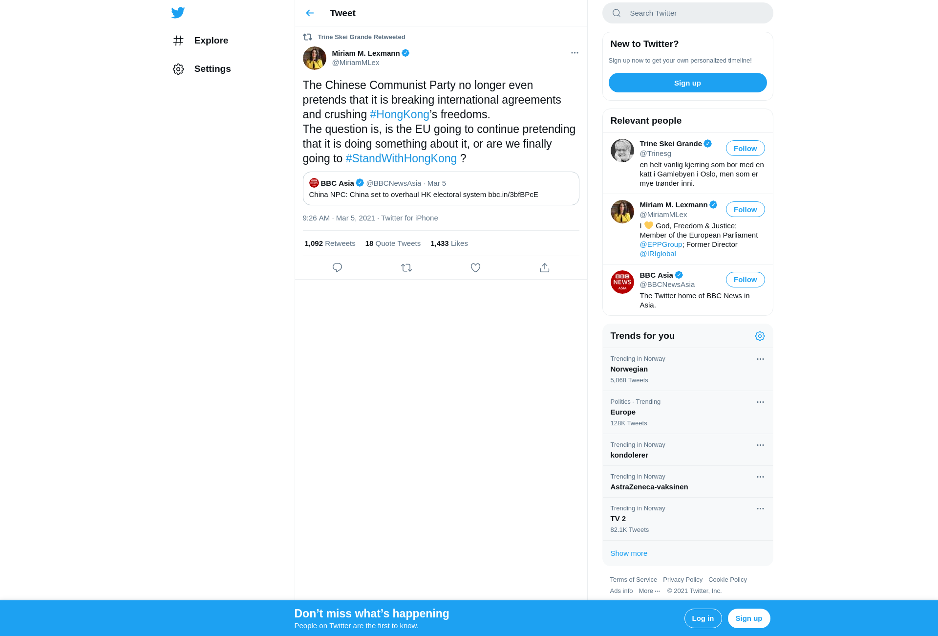 RT @MiriamMLex: The Chinese Communist Party no longer even pretends that it is breaking international agreements and crushing #HongKong’s freedoms.