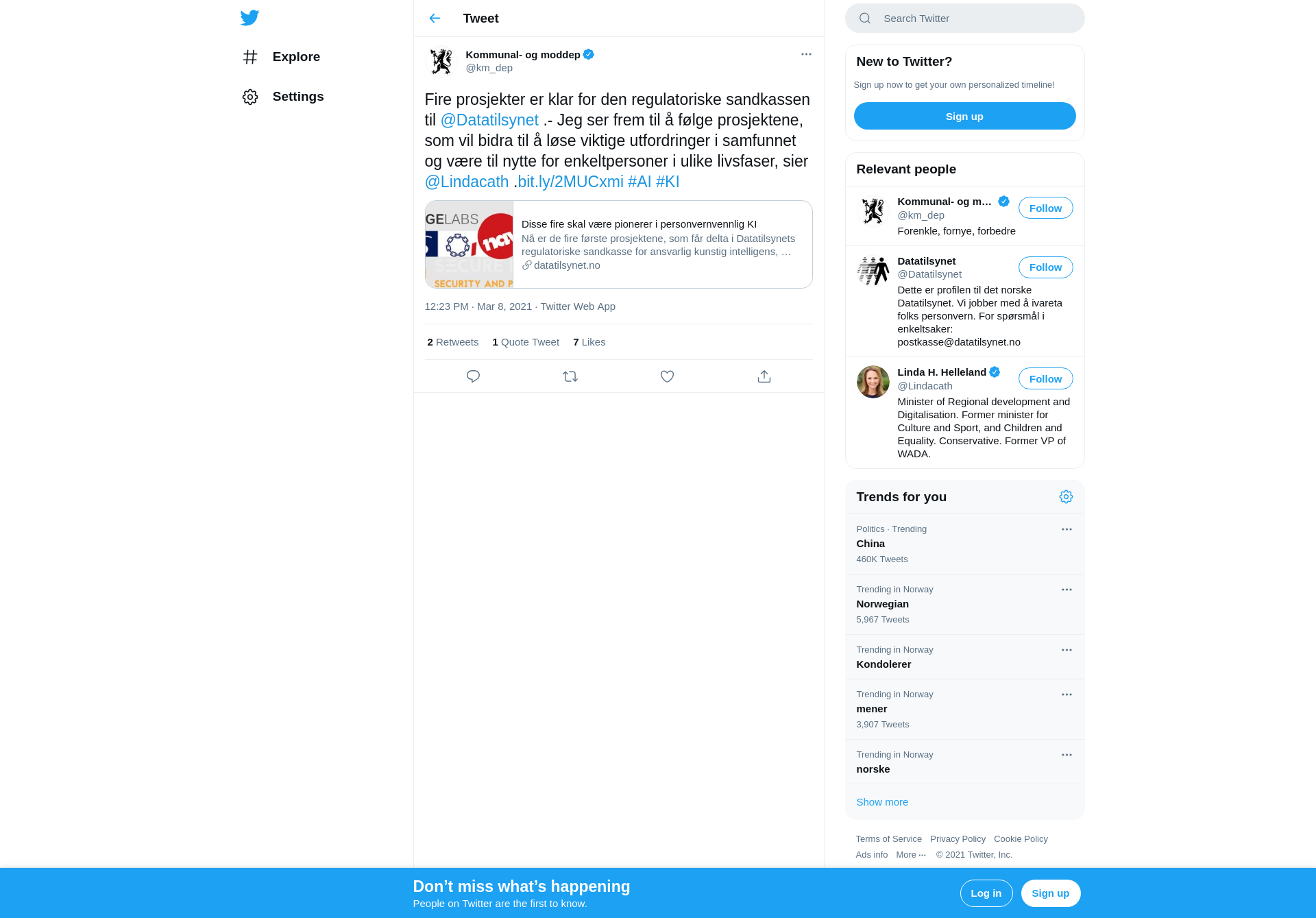 Fire prosjekter er klar for den regulatoriske sandkassen til @Datatilsynet .- Jeg ser frem til å følge prosjektene, som vil bidra til å løse viktige utfordringer i samfunnet og være til nytte for enkeltpersoner i ulike livsfaser, sier @Lindacath .https://t.co/04YoUF2JQT #AI #KI
