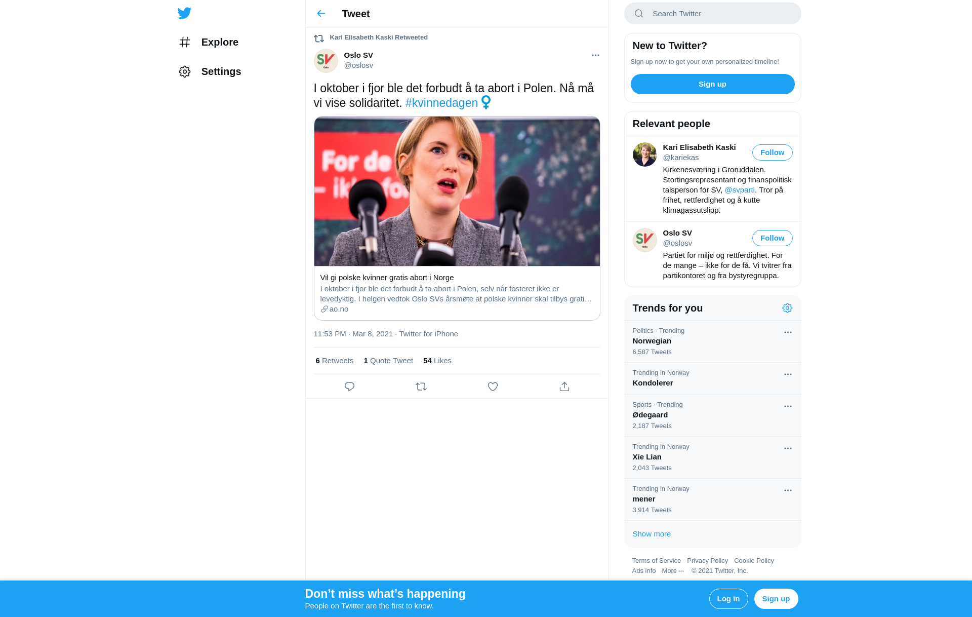RT @oslosv: I oktober i fjor ble det forbudt å ta abort i Polen. Nå må vi vise solidaritet. #kvinnedagen https://t.co/6k7AVgBPWl