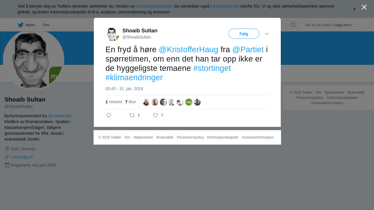 RT @ShoaibSultan: En fryd å høre @KristofferHaug fra @Partiet i spørretimen, om enn det han tar opp ikke er de hyggeligste temaene #stortinget #klimaendringer